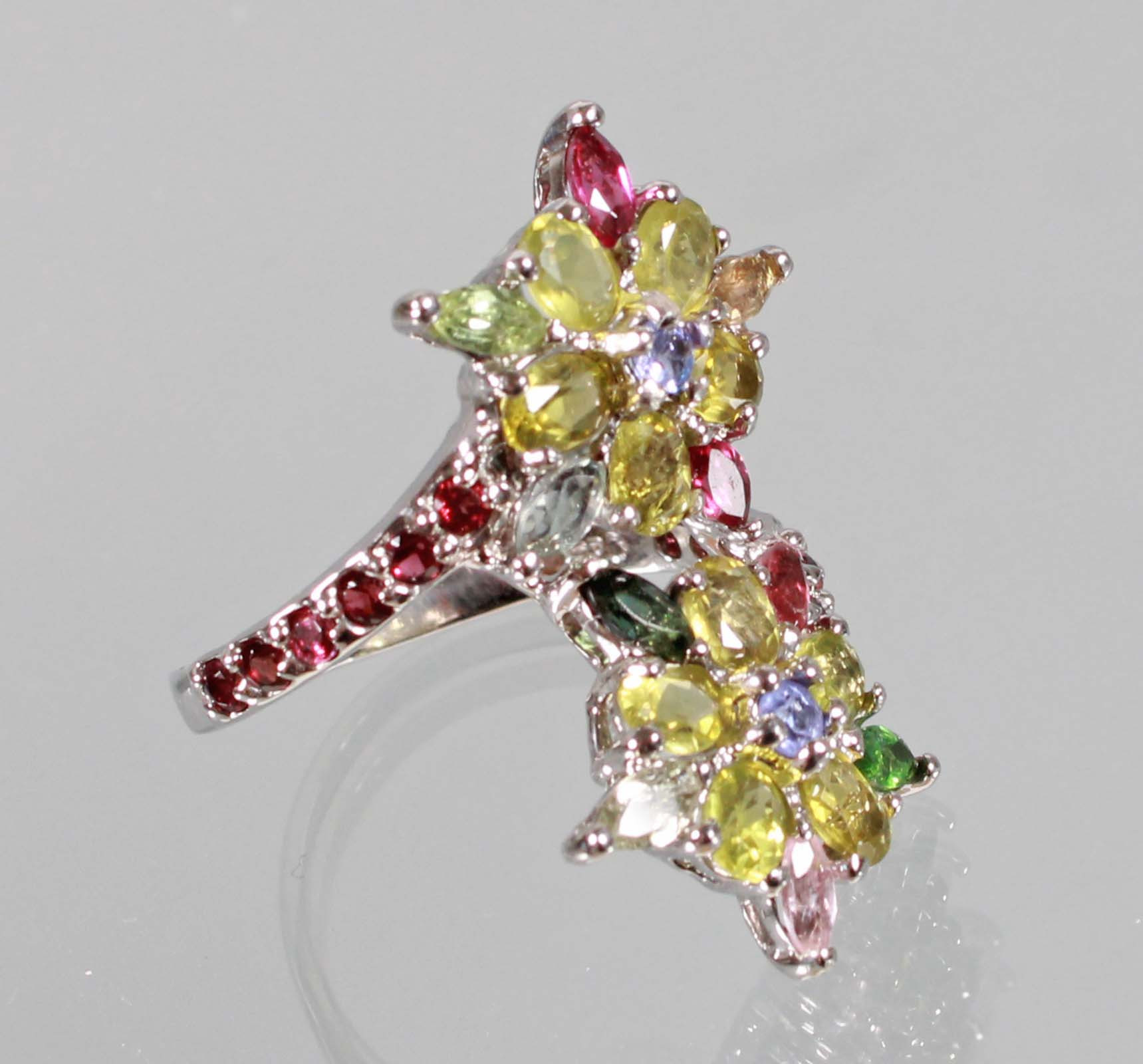 4166473. FLERFÄRGAD BLOMRING, SILVER 925.