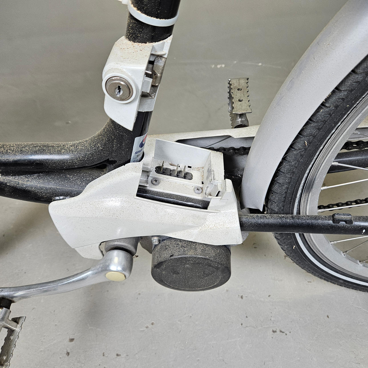 Punktering. Något lös sadel. Nyckel till batteri saknas. Batteri saknas. Laddare finns. Ej funktionstestat, ej fullständig genomgånget, ingen funktionsgaranti lämnas.