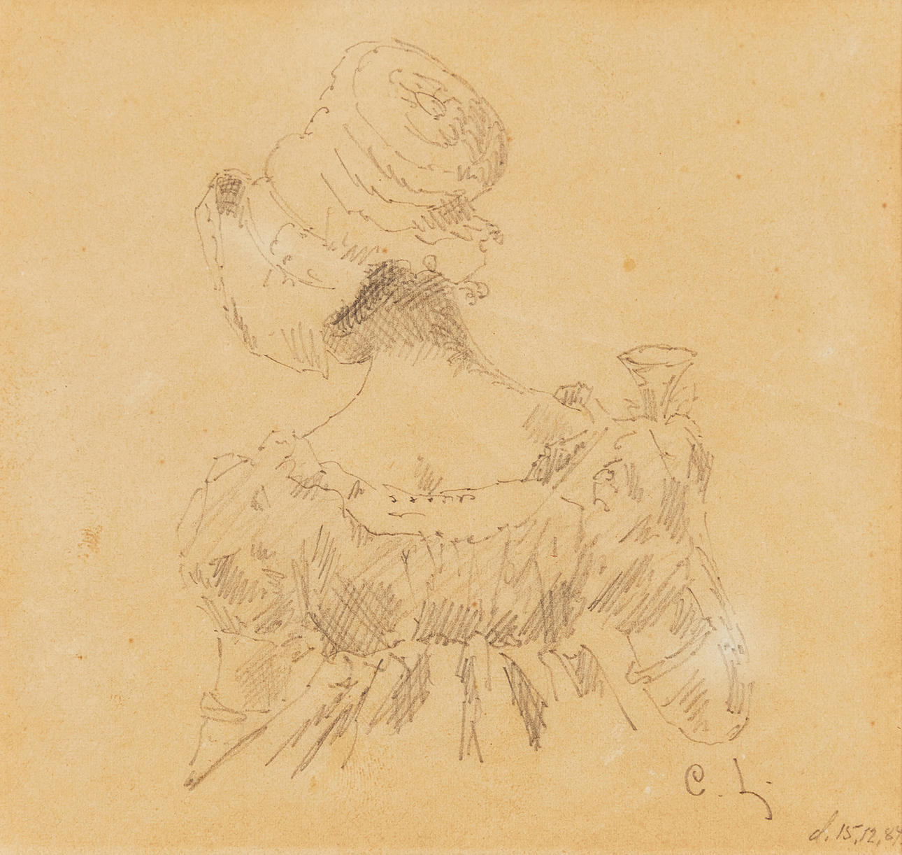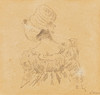 4168027. CARL LARSSON. Flicka sedd bakifrån i hatt.