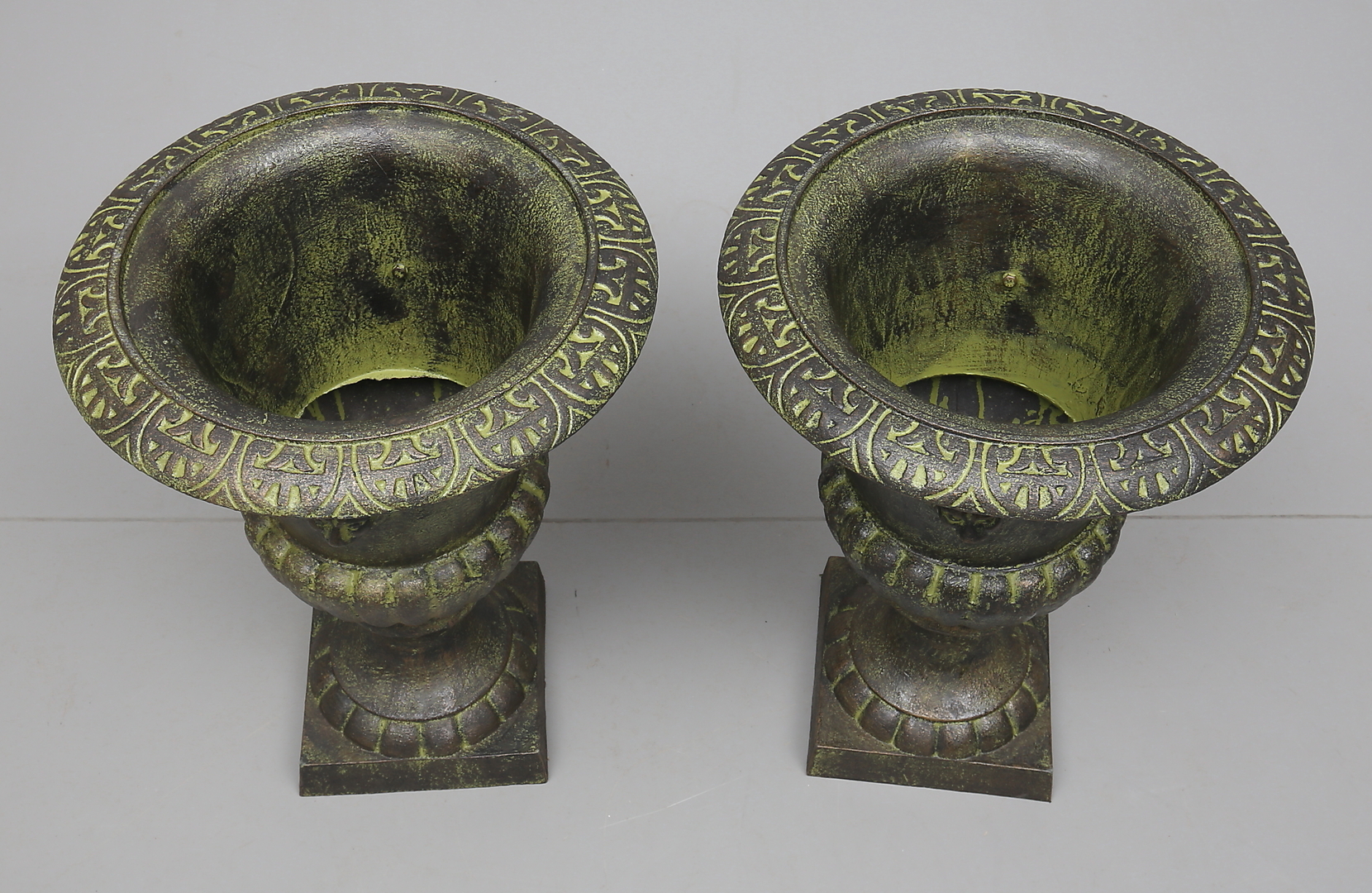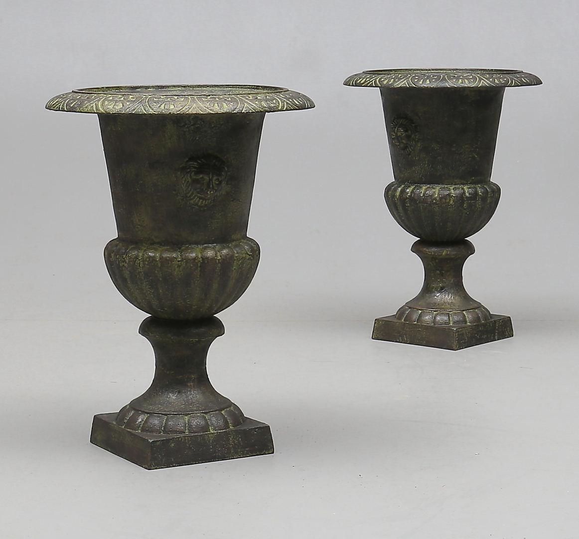 417057. TRÄDGÅRDSURNOR, ett par, gjutjärn, 2000-tal.