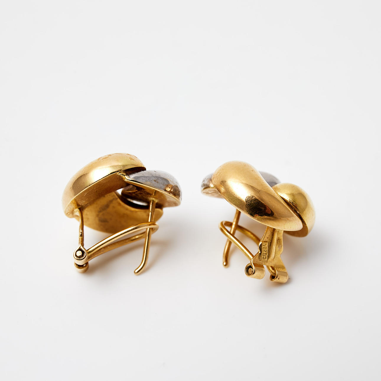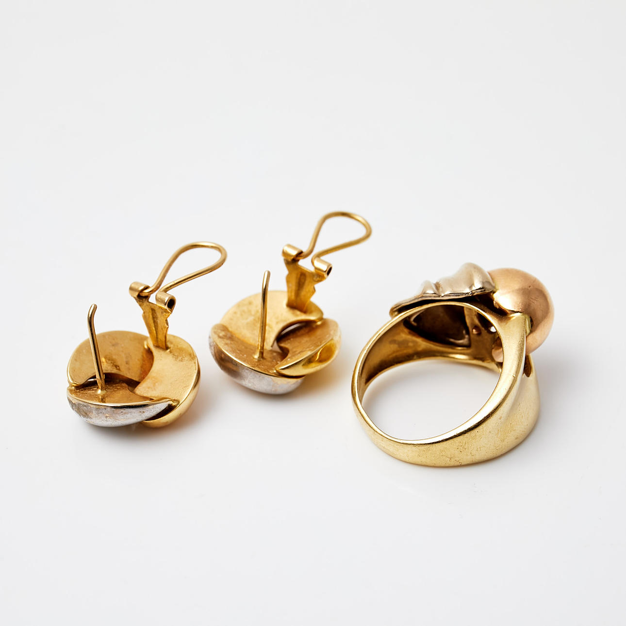 4171069. GARNITYR, 18 k vit- röd och roseguld, örhängen samt ring.