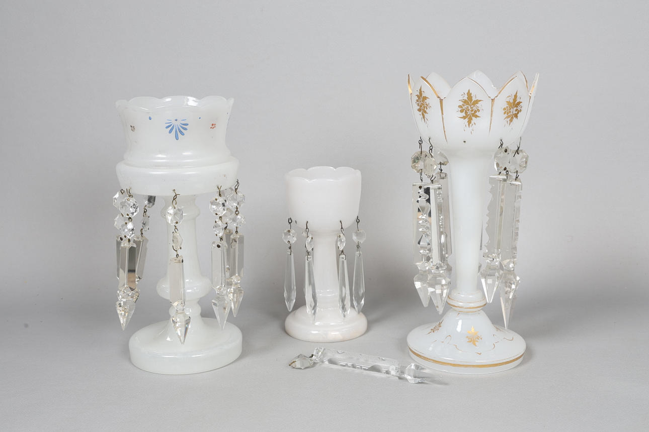 4176571. TRE SENVIKTORIANSKA MJÖLKGLASLYSTER (3).