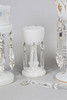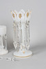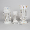 Den största med förgylld dekoration, en annan målad med blått, alla hängde med prismaglasdroppar, 28,5 cm lång, 26 cm och 17,5 cm lång (3).
