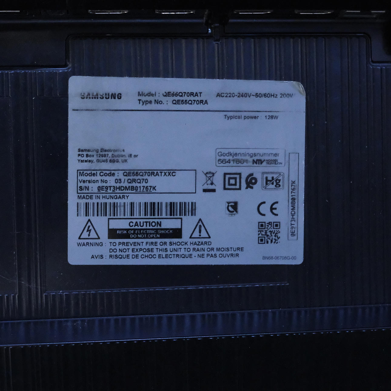 Modell no. QE55Q70RAT.