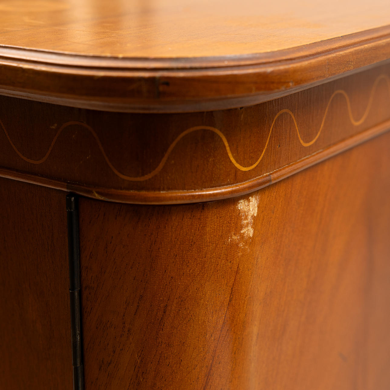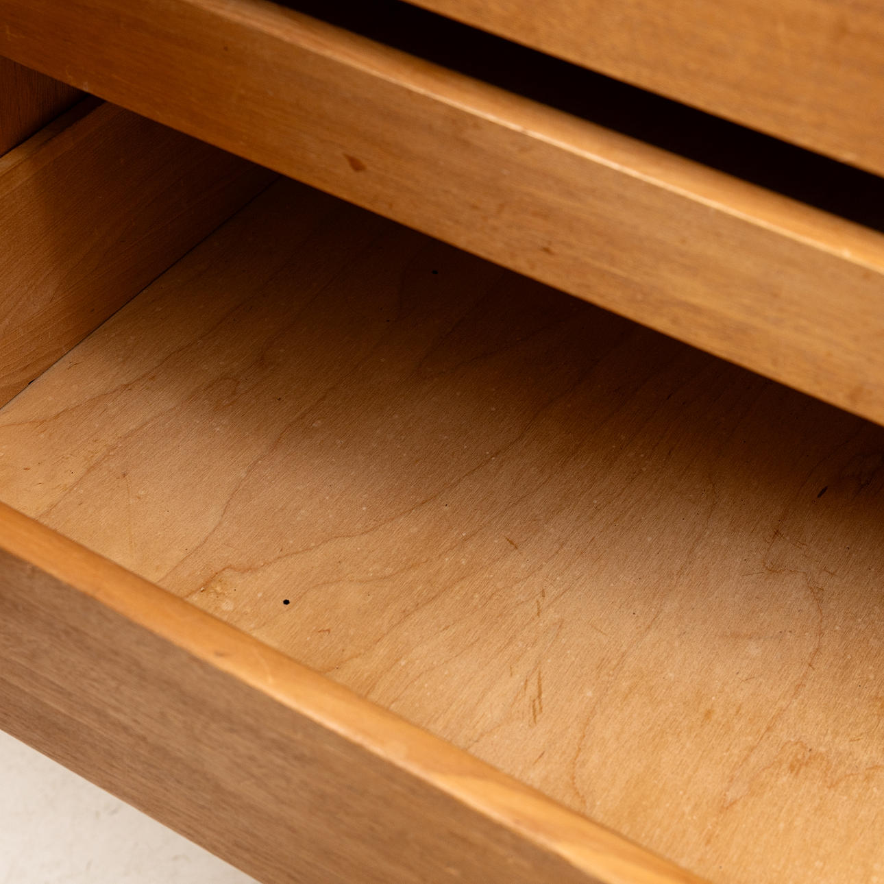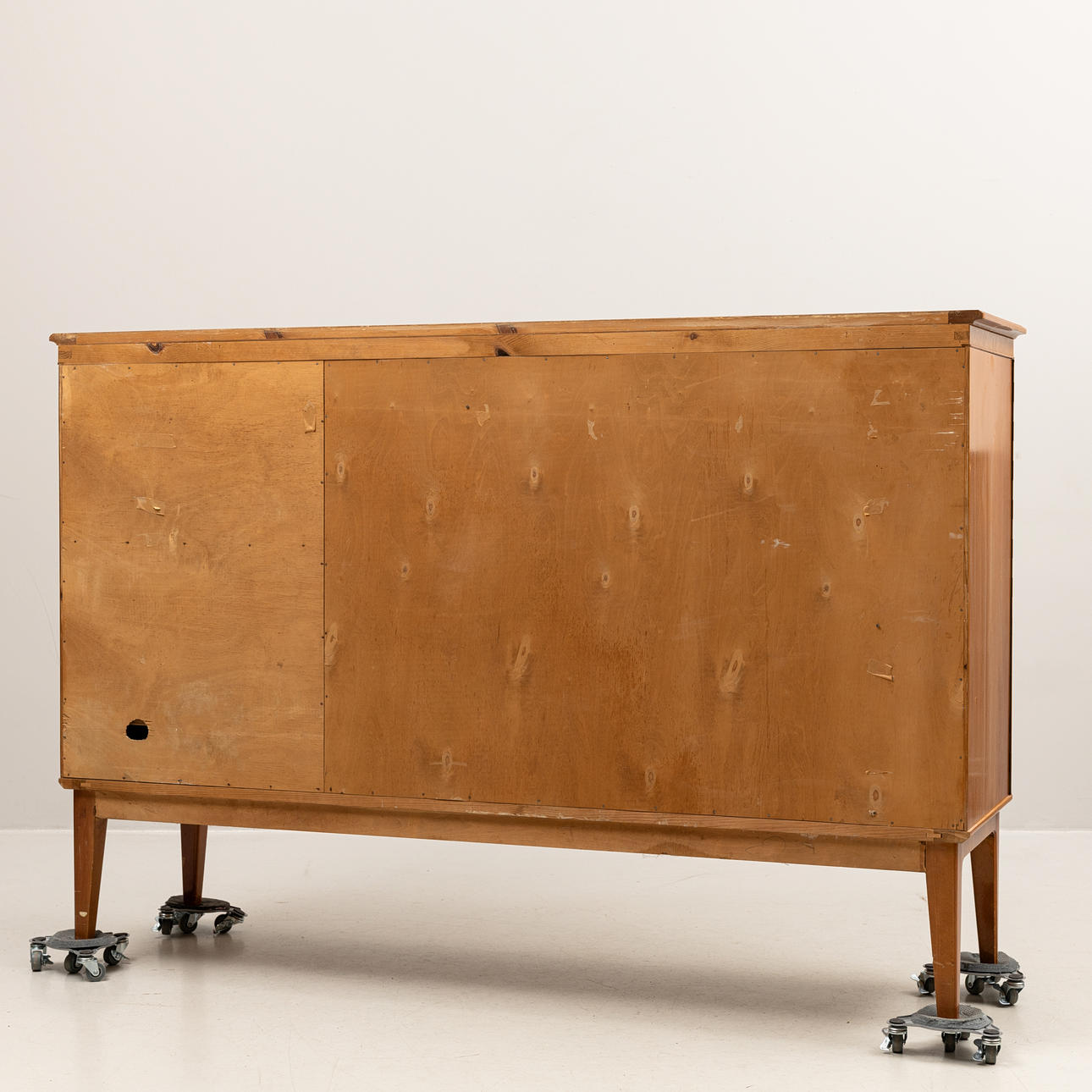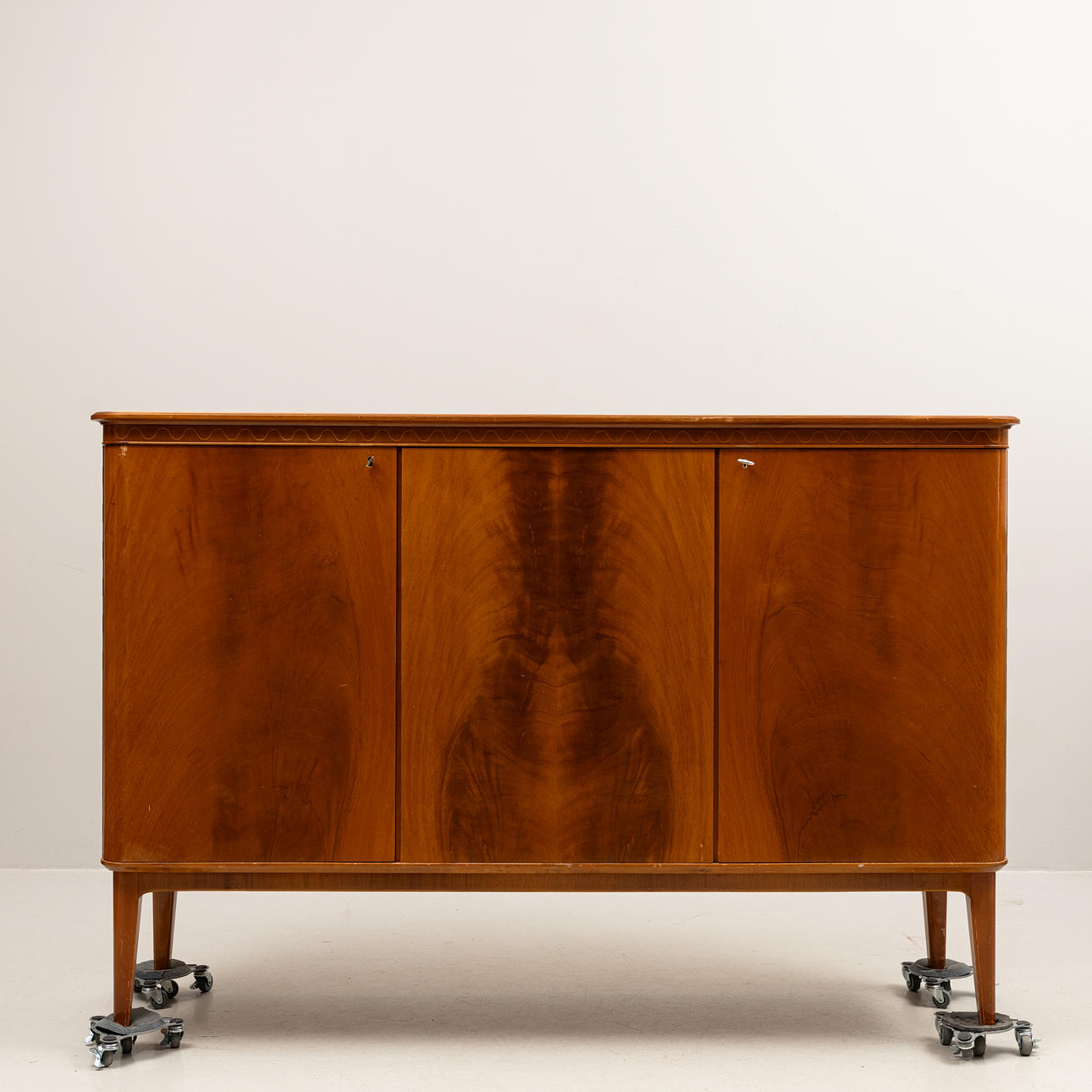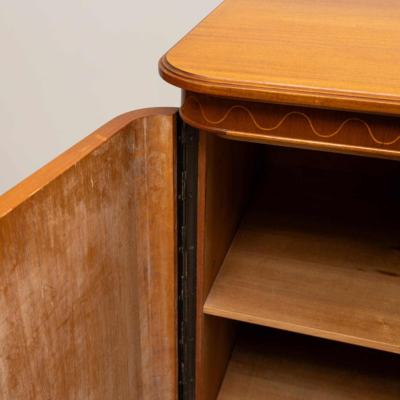 Med dekor längst bård, Invändigt med utdragbara lådor och hyllplan.