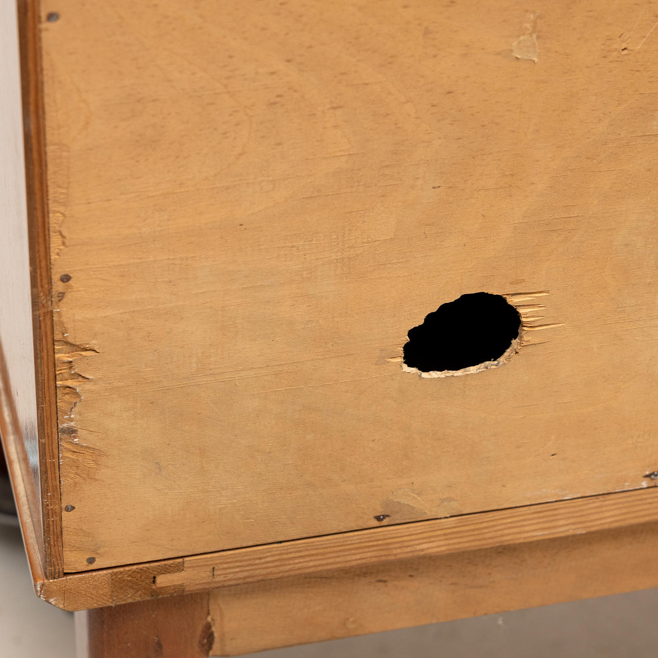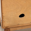 Bruksslitage, märken. låsbussning på ena skåpsdörren borta samt lås med skador.