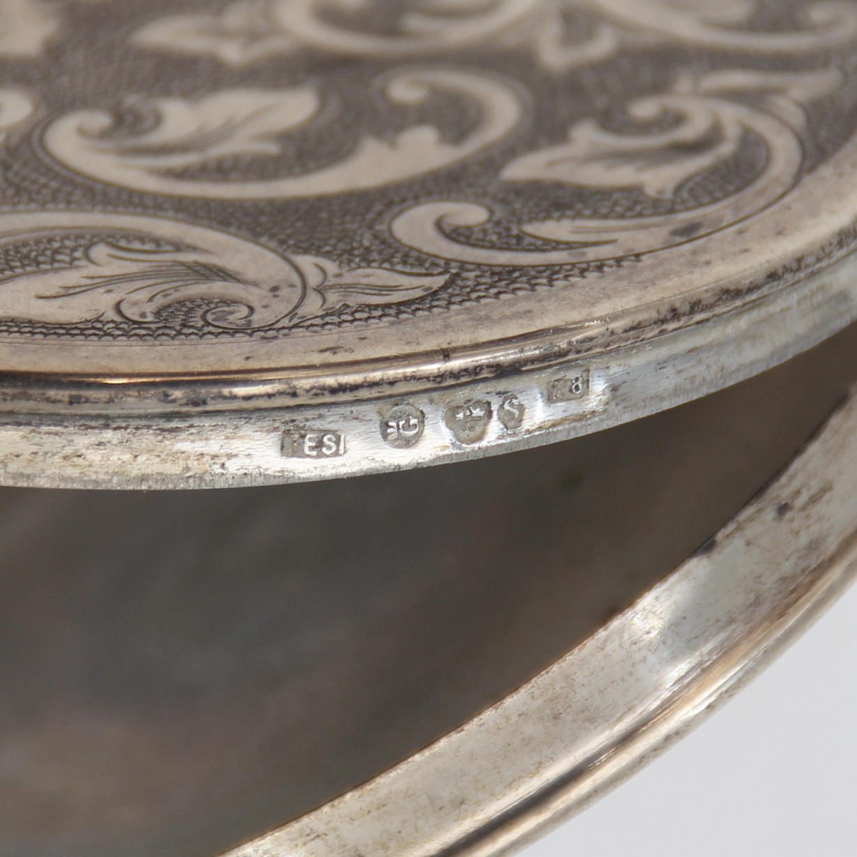 Ålders- samt bruksslitage, gravyr, oputsad.