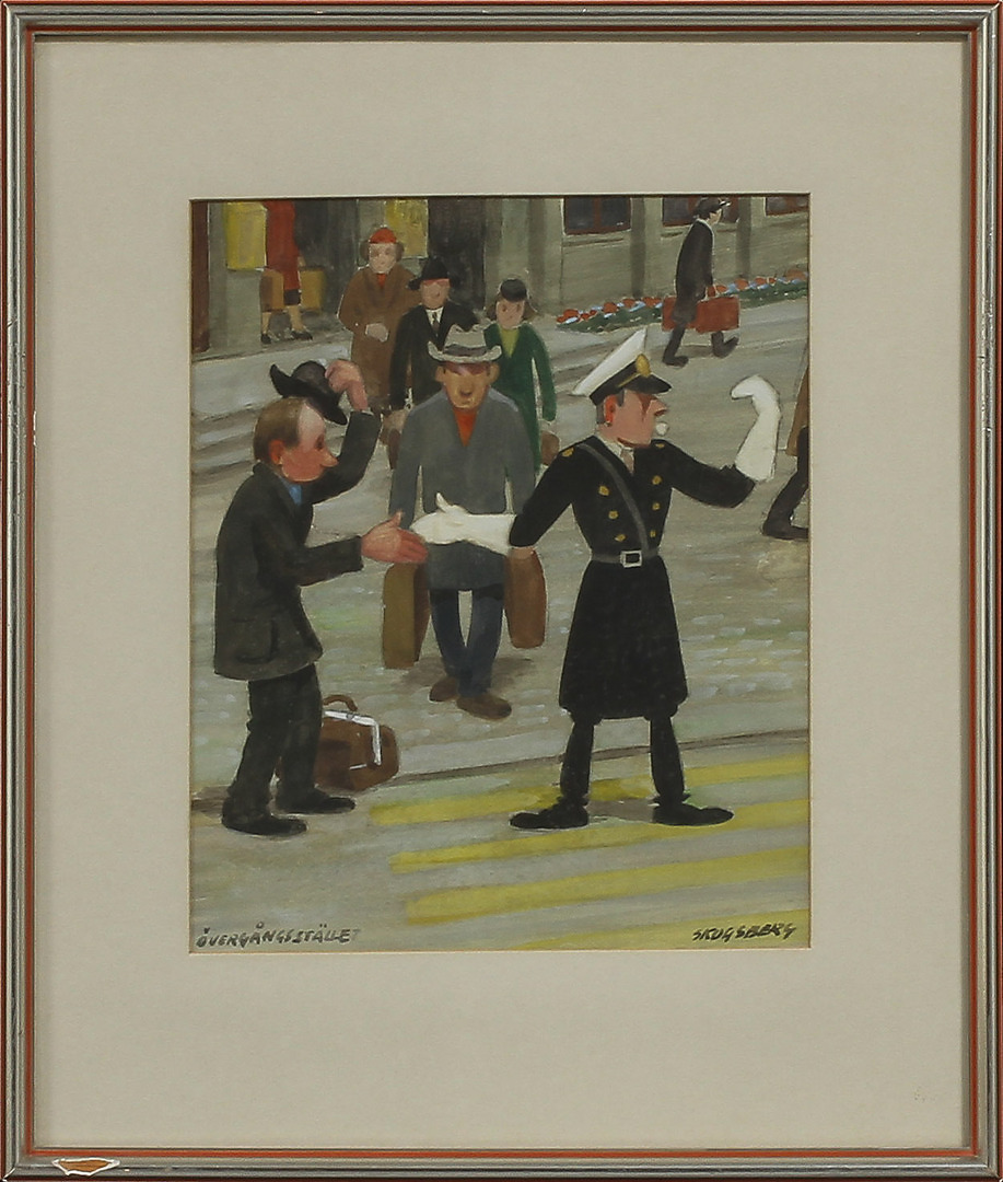 417899. HARALD SKOGSBERG. "Övergångsstället", akvarell, signerad.