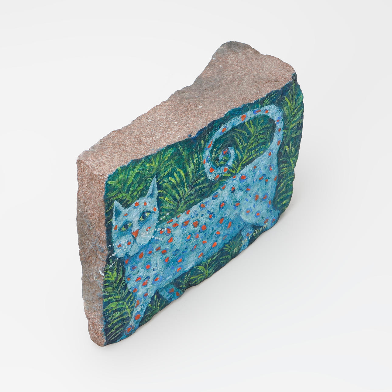 4179235. PERNILLA STAPPE. Prickig katt, bemålad sten, signerad.