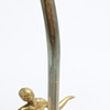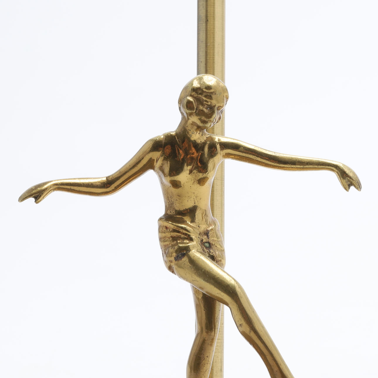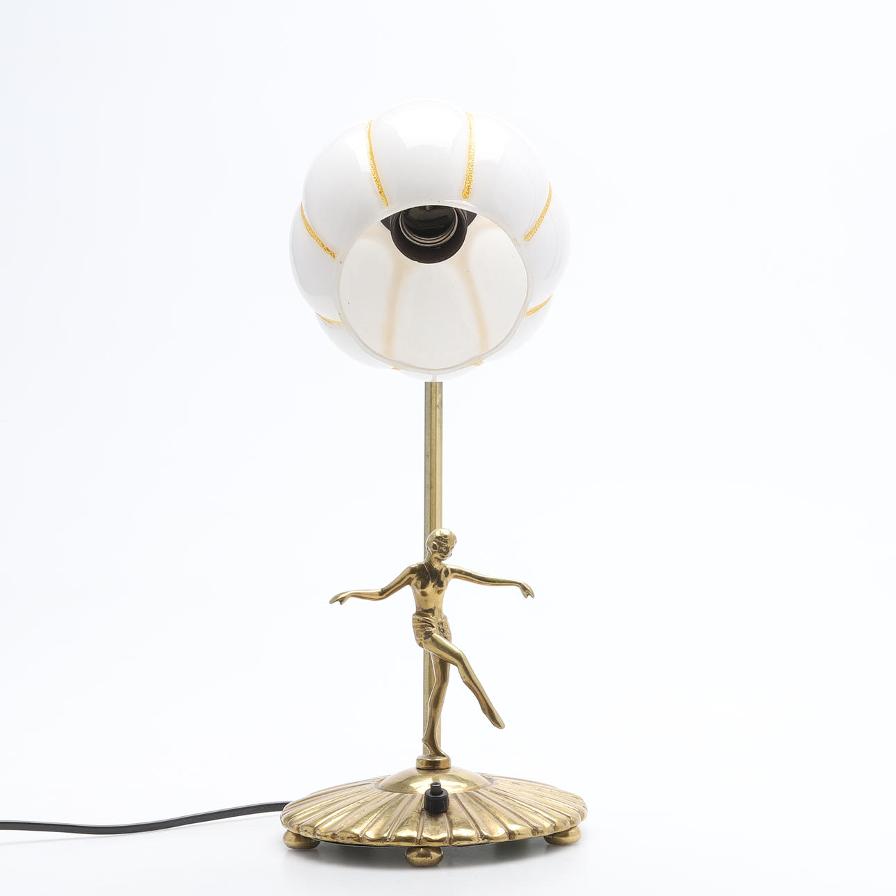 Mässing. Fot med dansande figurin. Kupa av glas. Höjd 40 cm.