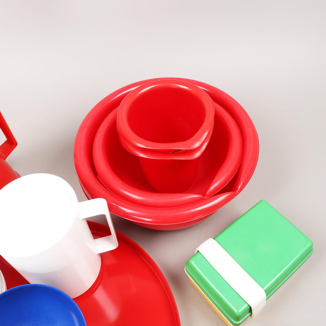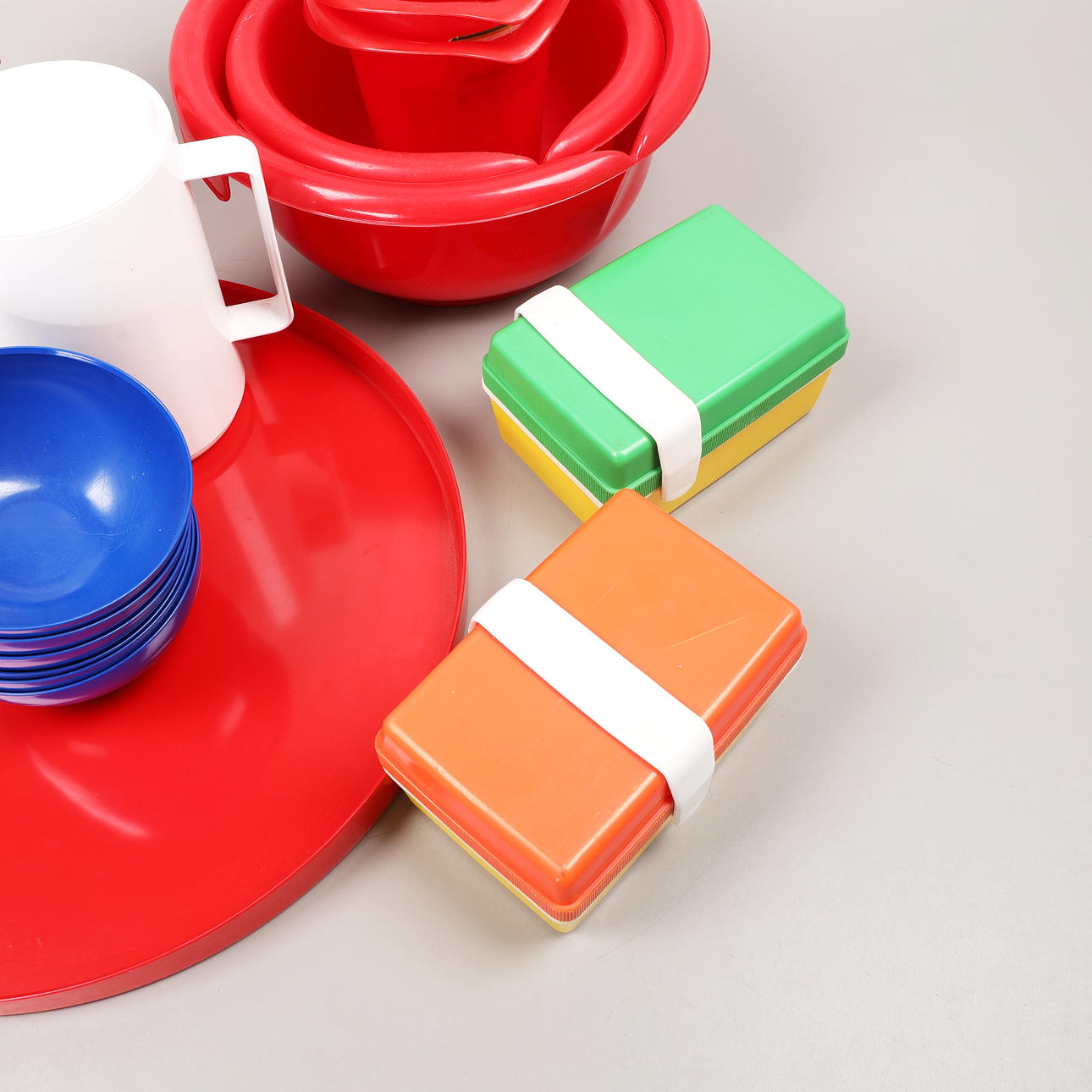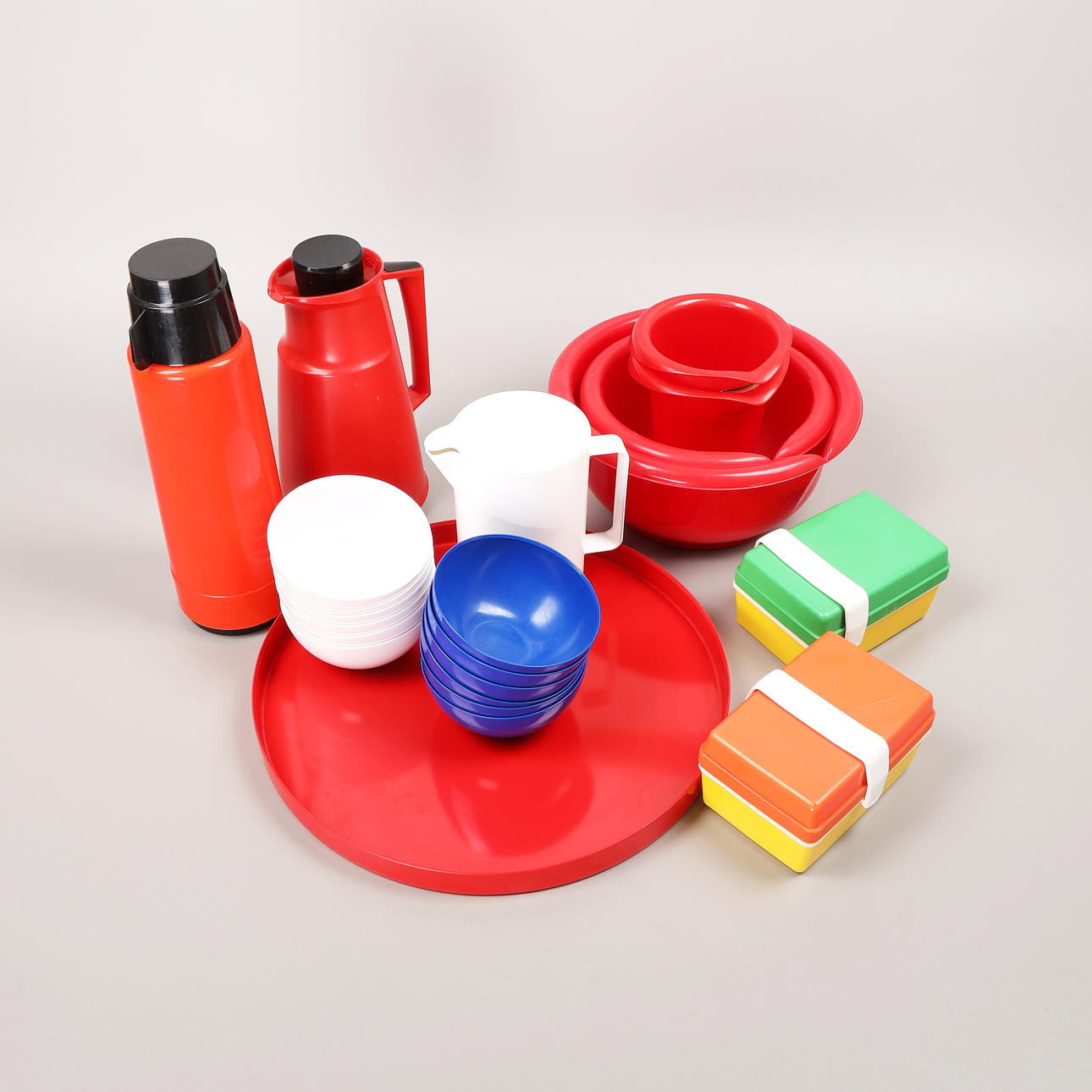 Termosar, skålar, bunkar, matlådor, bricka. Gustavsberg, Termoverken, Rubbermaid mm.