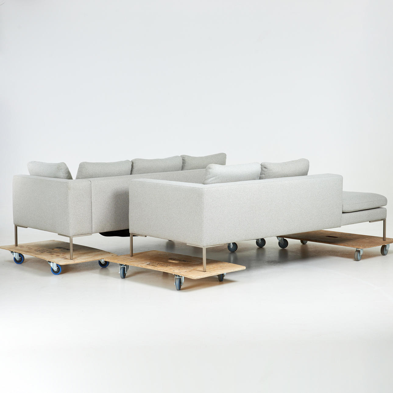 4180785. SOFFA, hörnsoffa, open end vänster, samtida, grå textilklädsel.