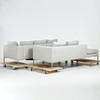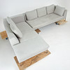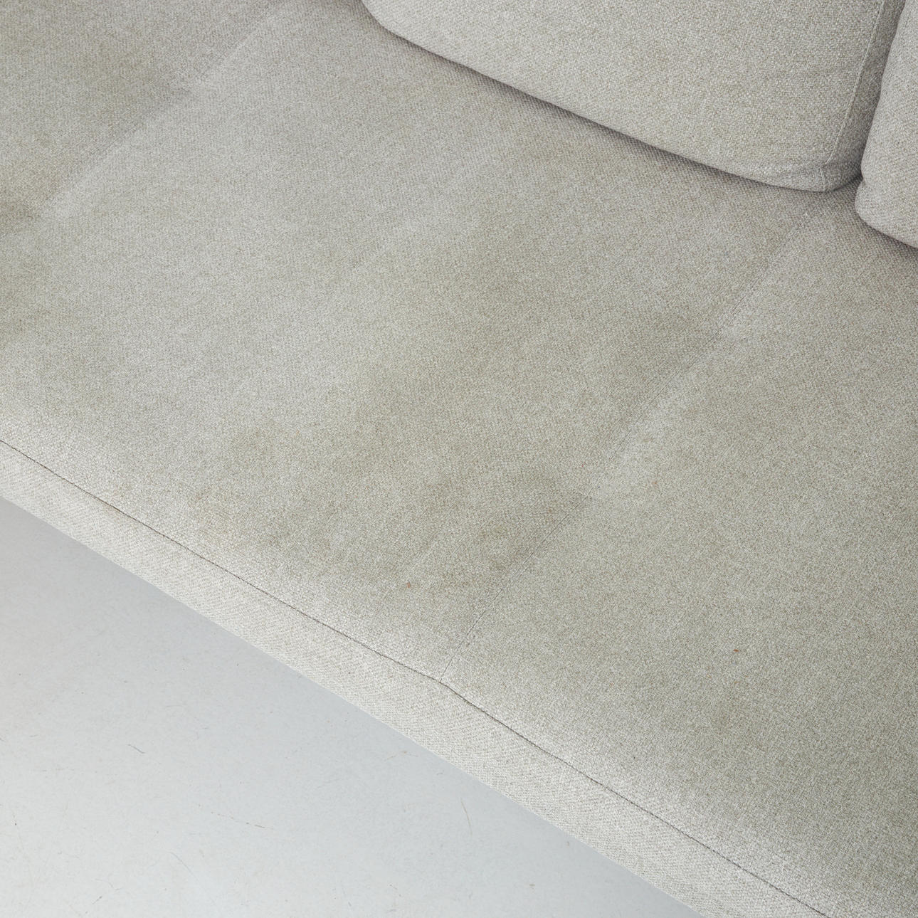 Sittdynor och stomme med bruksslitage och fläckar, sittdynor och kuddar med avtagbar klädsel.