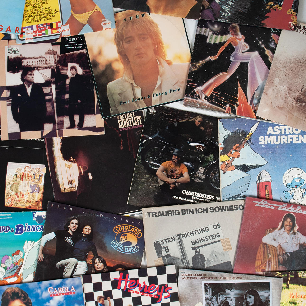 46 LP-skivor med blandade artister/grupper samt 1 singel Tommy Steele.