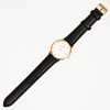 Quartz, safirglas, datum, läderarmband med spänne i gulddoublé, diameter 33 mm, box.