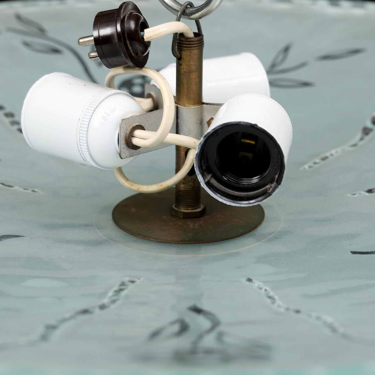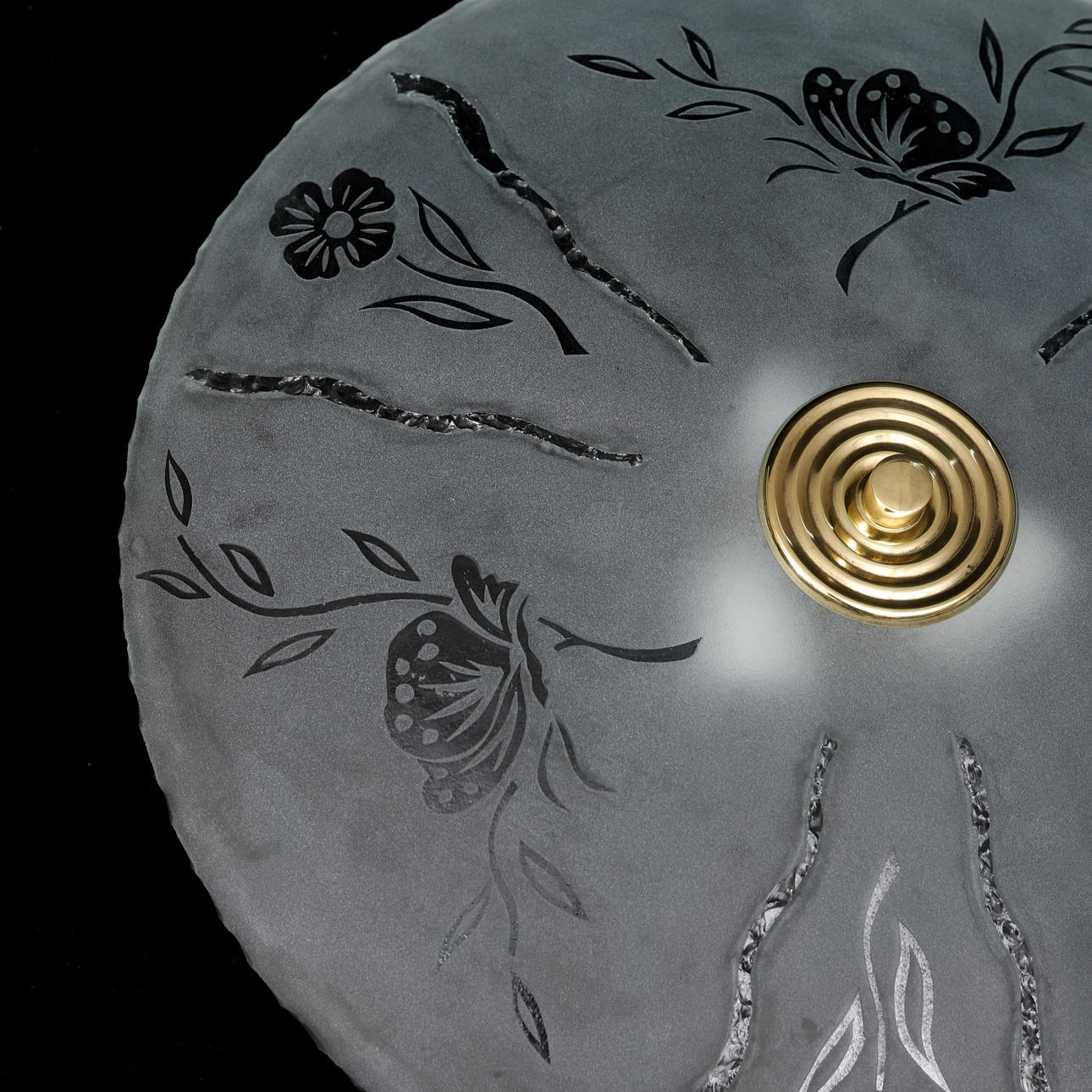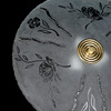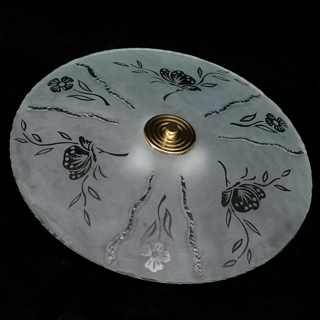 Skärm av råglas med blomdekor. Tre ljuspunkter. Diameter ca 52, höjd 12 cm.