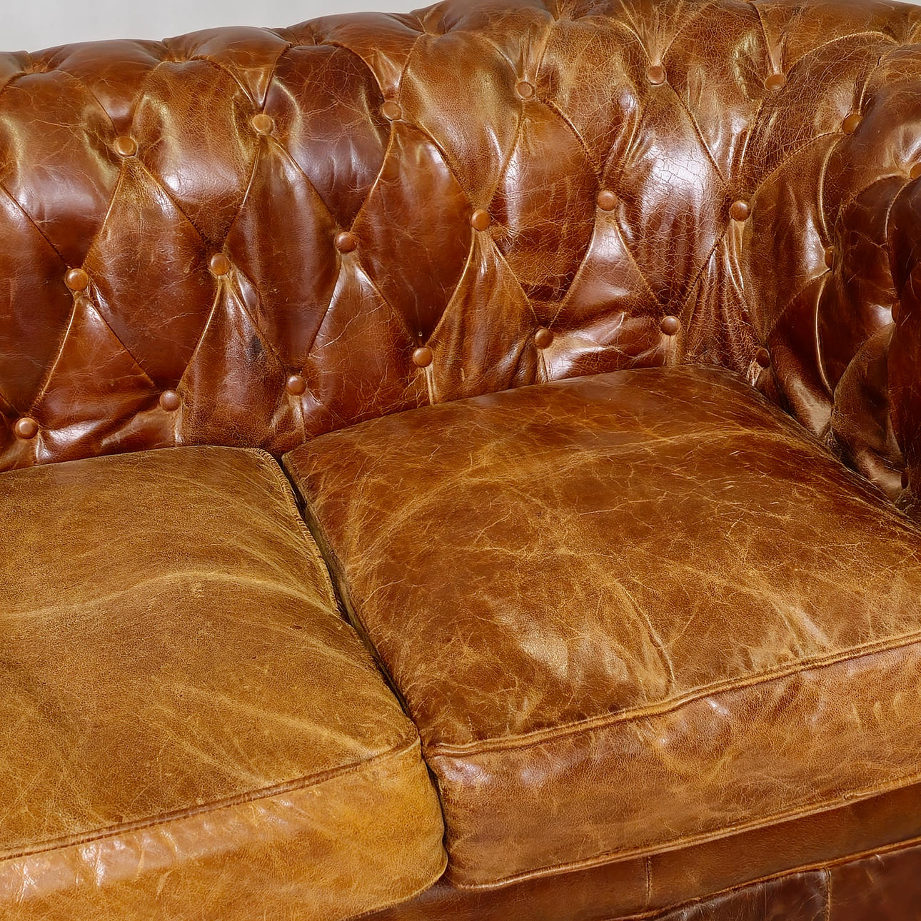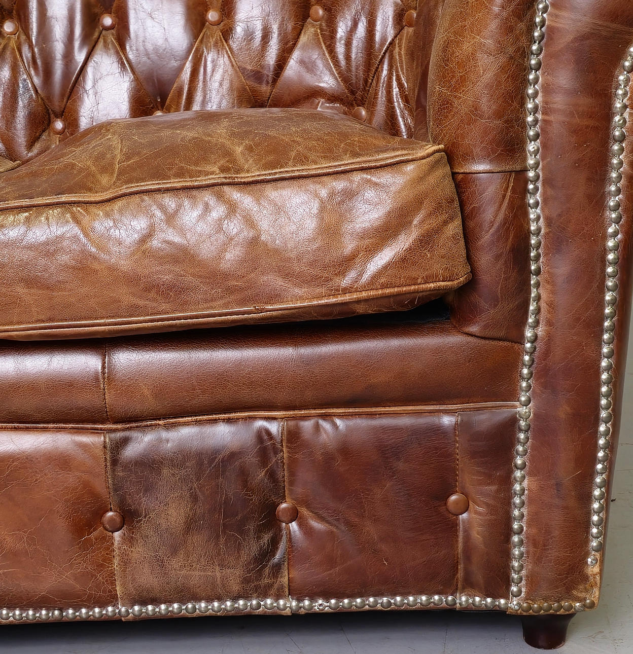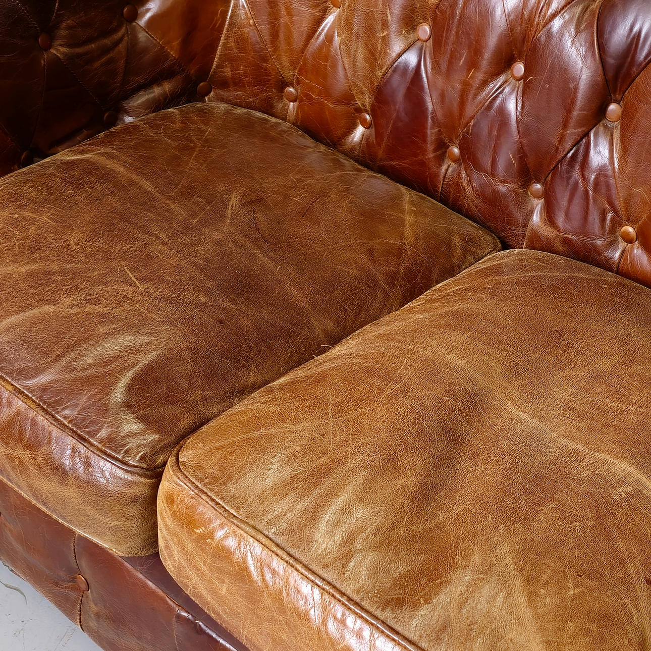 Tecken på slitage på lädret.