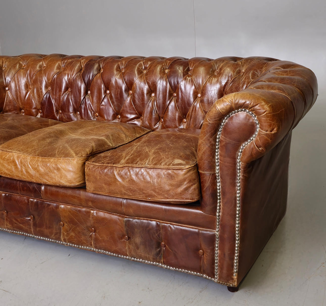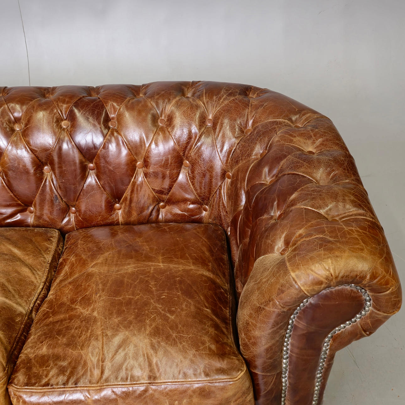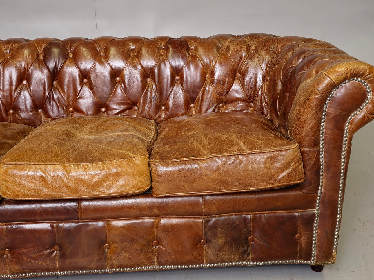 Tecken på slitage på lädret.