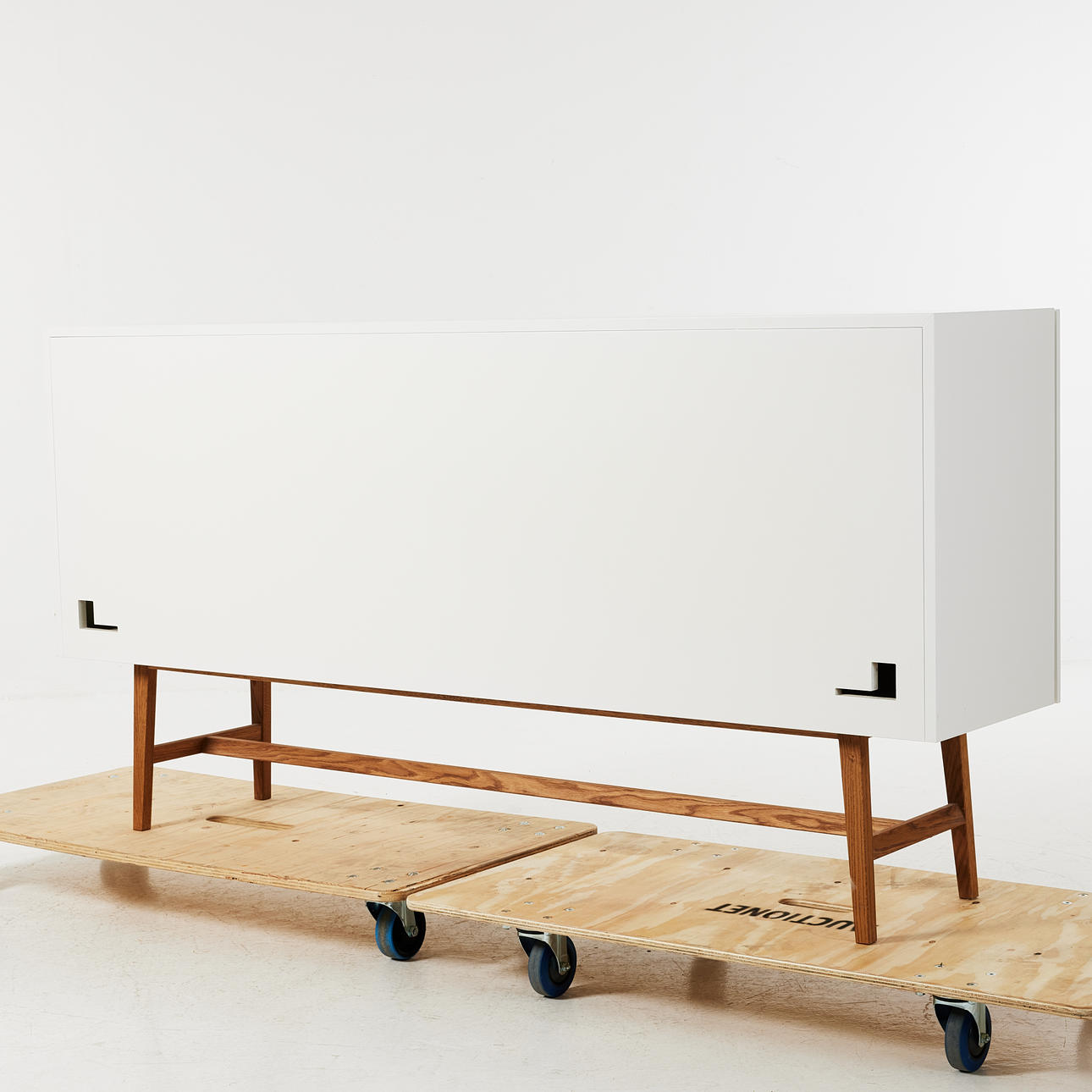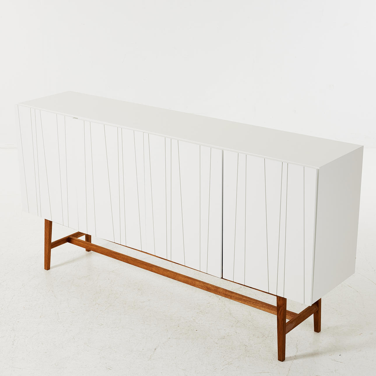 vitlackerat, dörrar med linjärt mönster, underrede i ek, höjd ca 94, 180x40 cm.