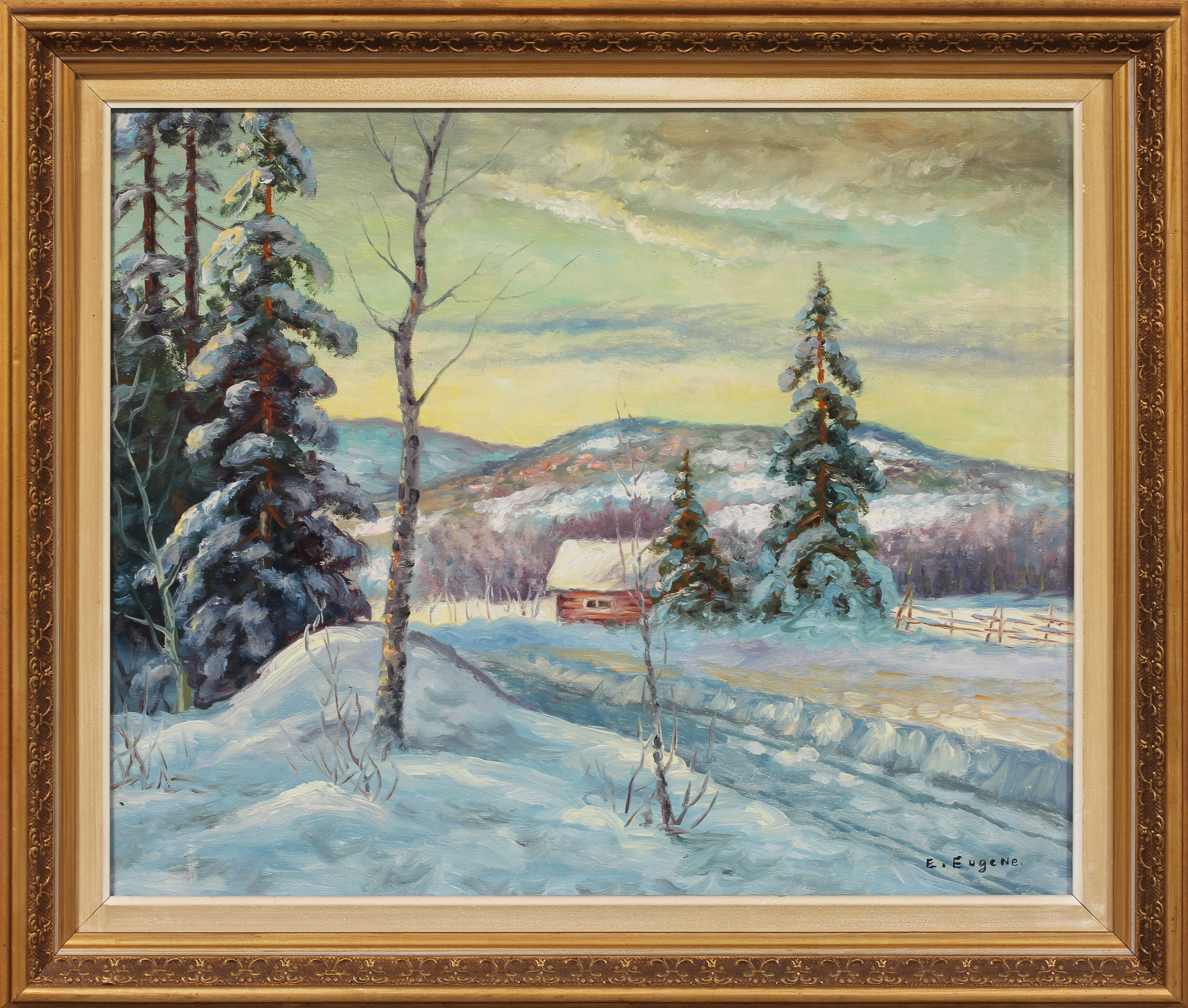 418796. EVERT EUGENE FRANSSON. Vinterlandskap, olja på duk, signerad E. Eugene.