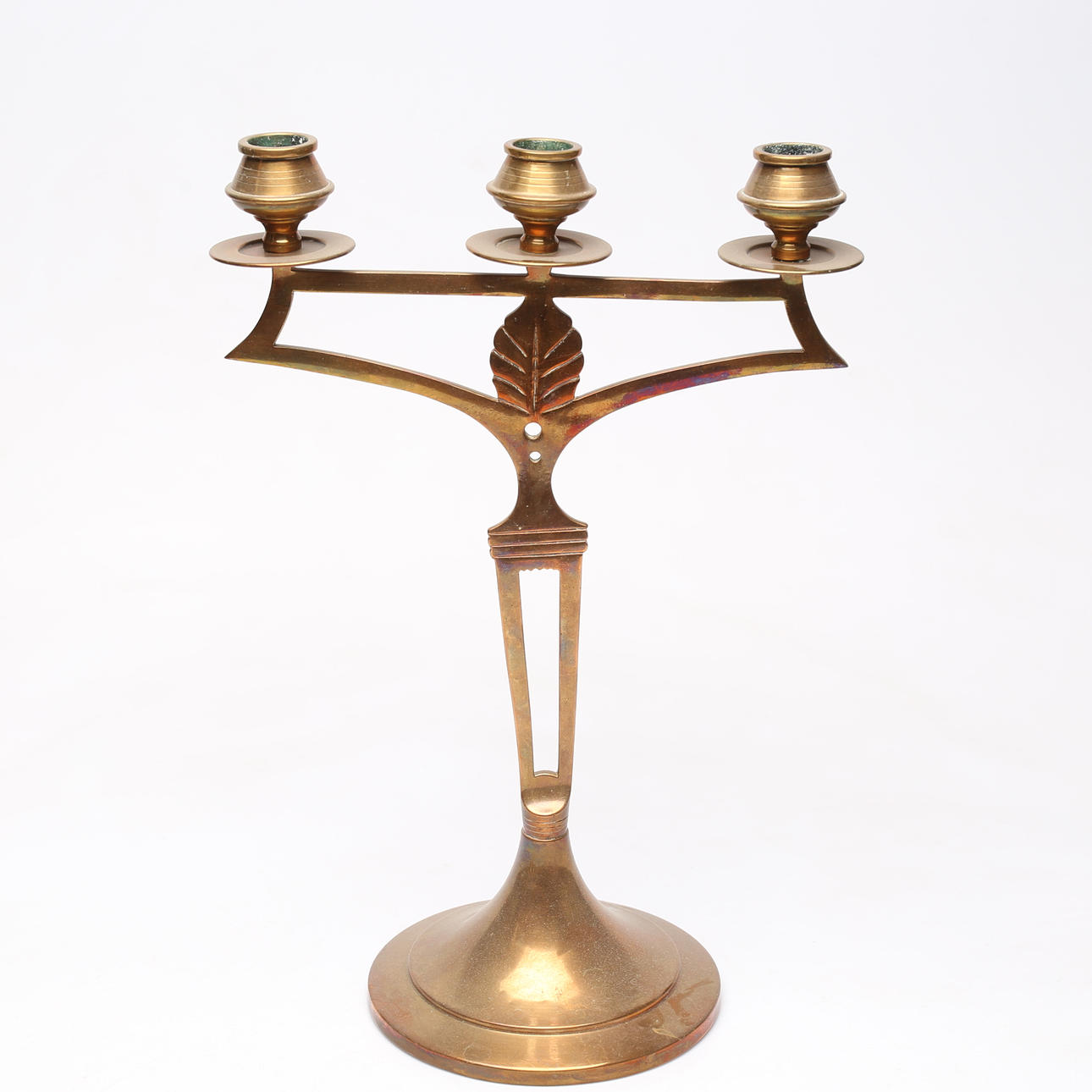KANDELABRAR, 3 st, jugendstil, mässing, 1900-tal.