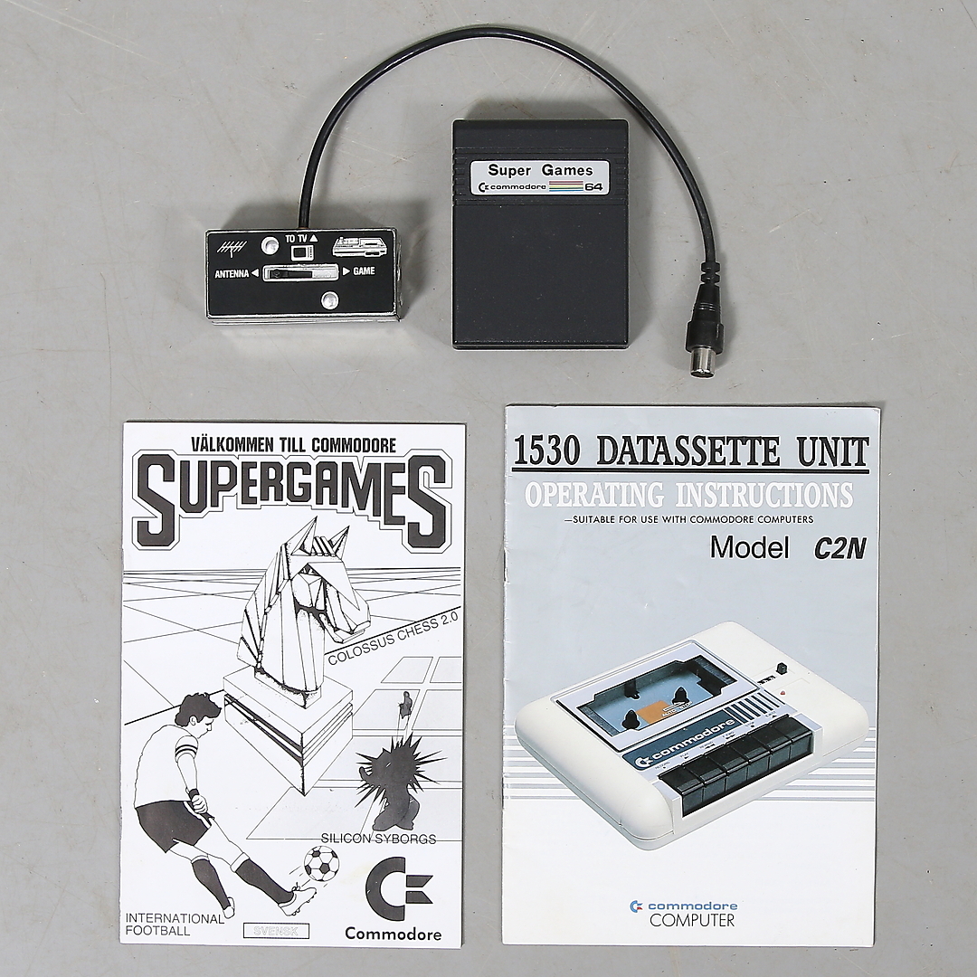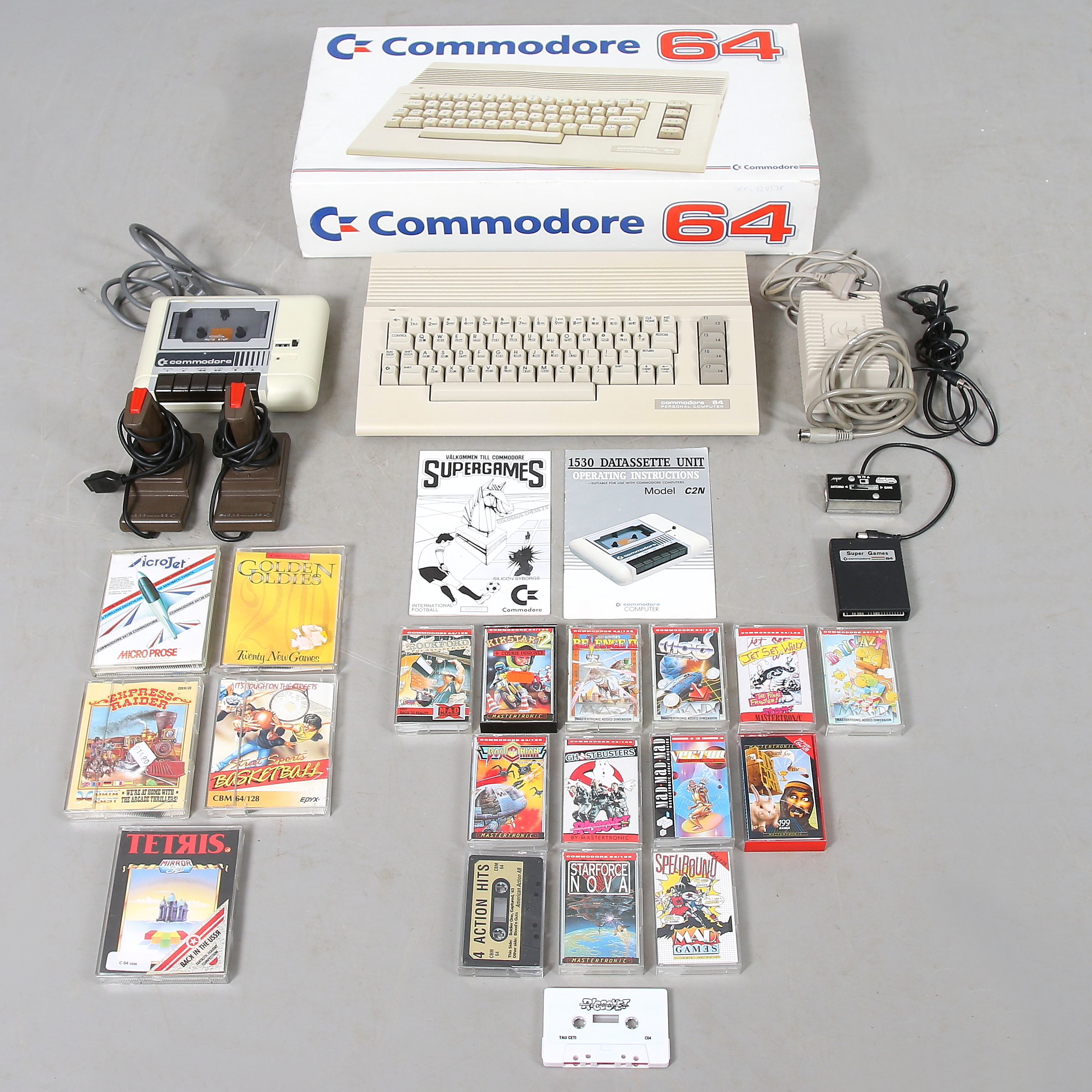418994. COMMODORE C 64, med spel. 1980-tal.