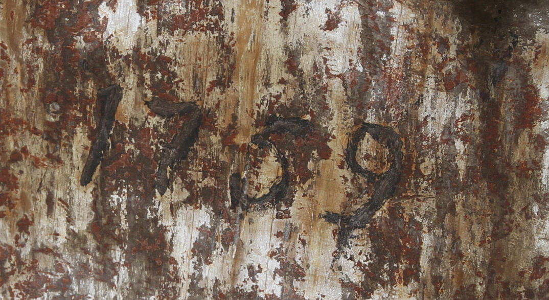 Delvis framtagen originalmålning, daterat 1759 i dörr.