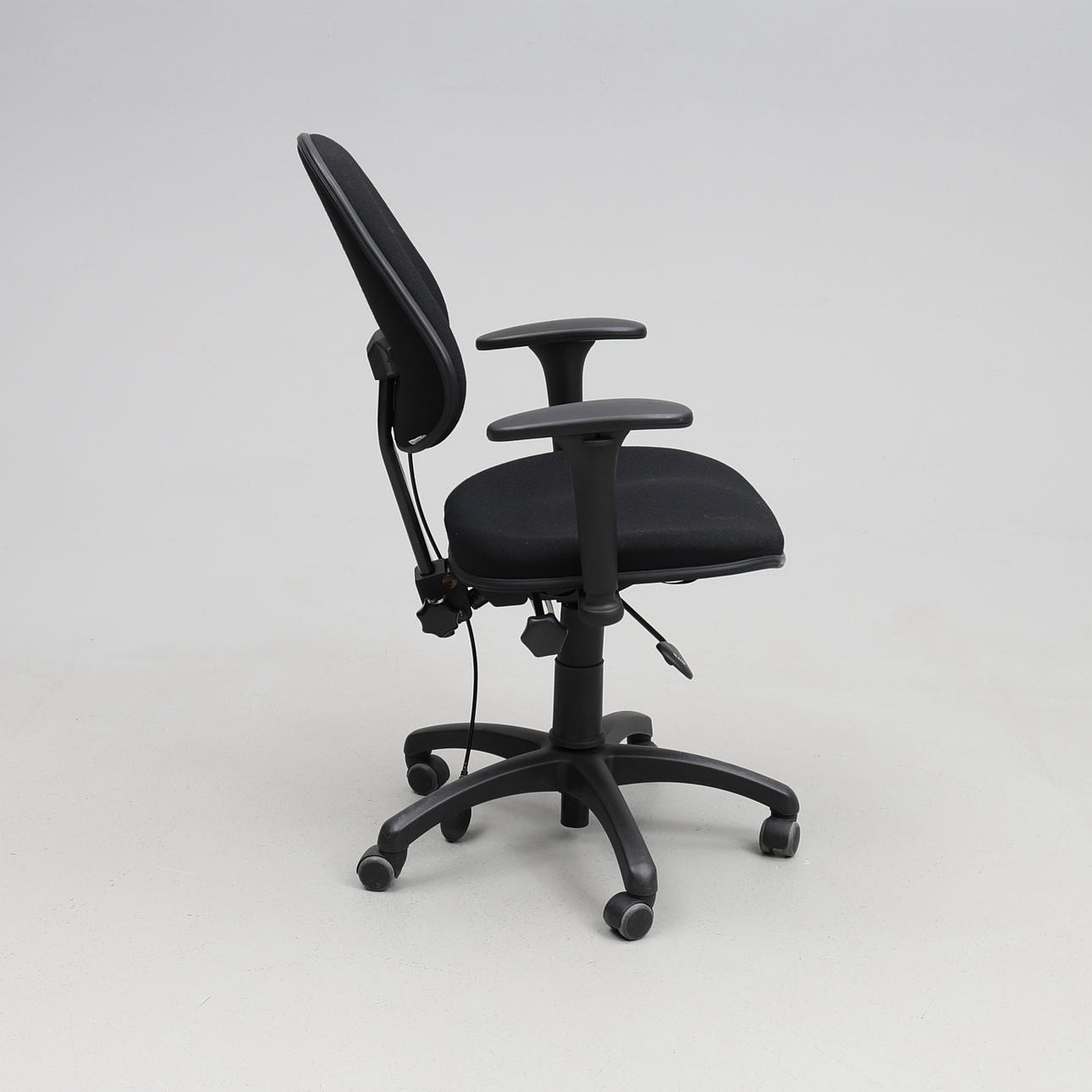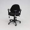 Kontorsstol med höj och sänkbar sits samt armstöd. Mått ca 62 x 45 cm.