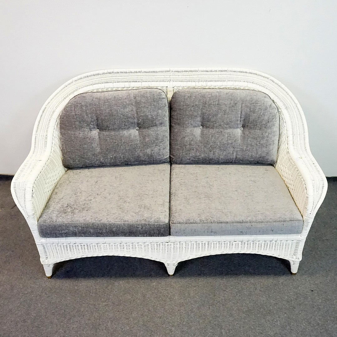 1st soffa med lösa plymåer i grå plysch, avtagbar klädsel, längd ca 167 cm, höjd ca 92 cm, sitthöjd ca 44 cm, djup ca 86 cm.