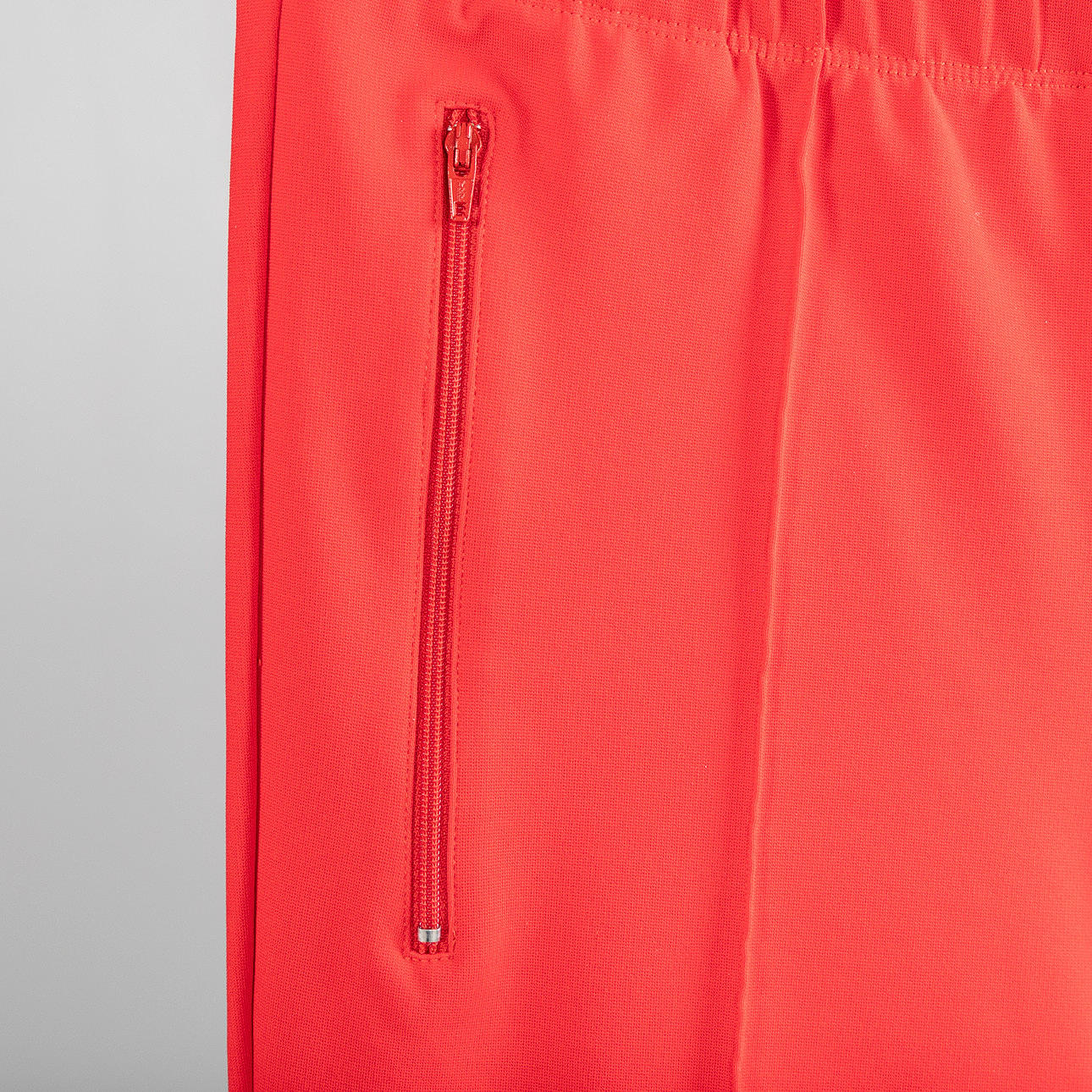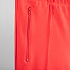 Ski-pants modell i röd spandex med två blixtlåsförsedda fickor, sydda pressveck, midja med resårband. Midjemått ca 74 cm. Beninnerlängd ca 66 cm.