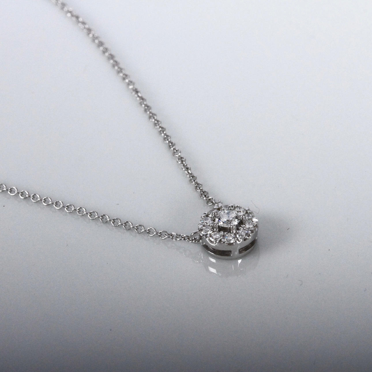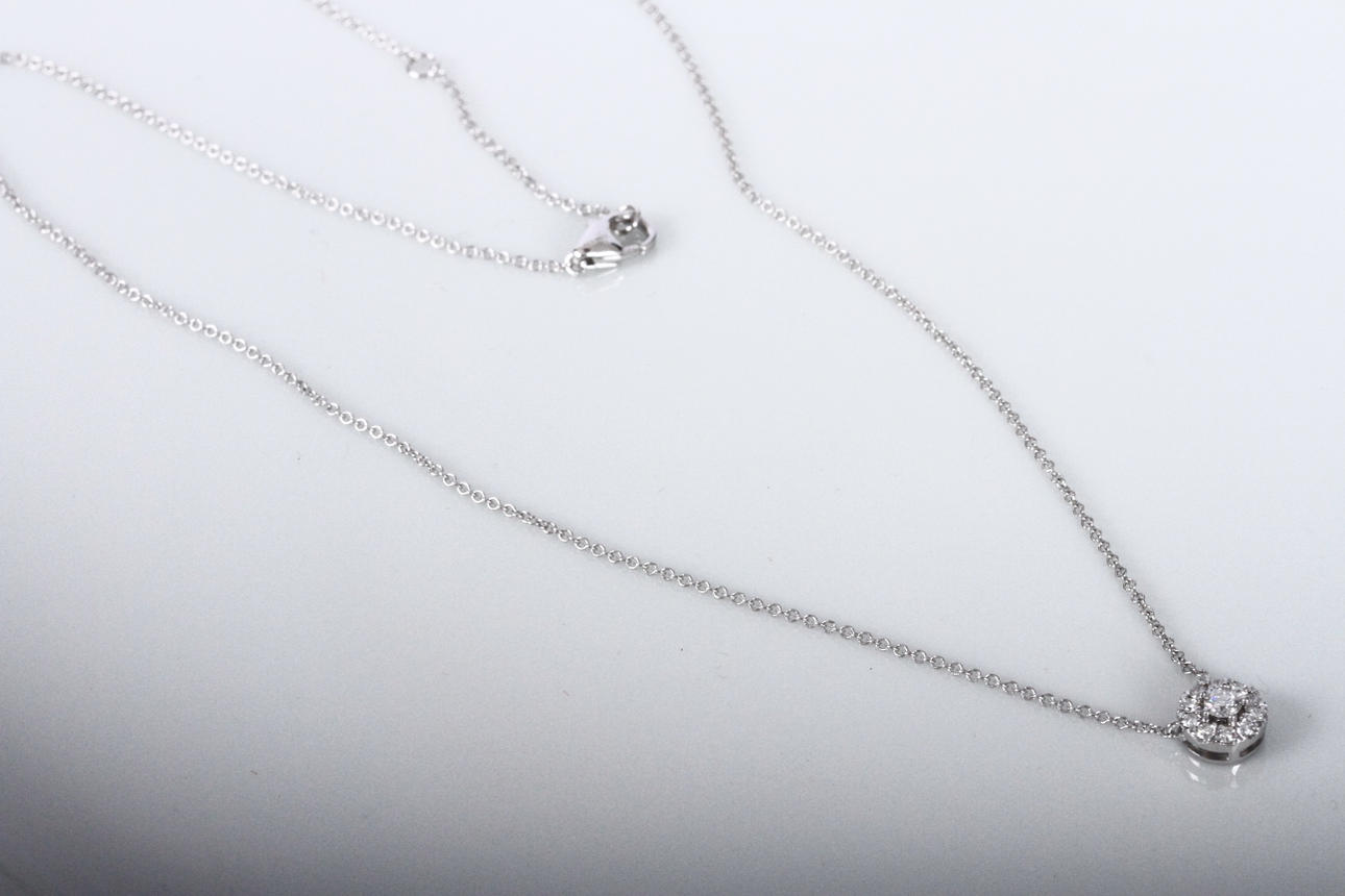 Besatt med en större briljantslipad diamant samt 10 st mindre briljantslipade diamanter på totalt 0,22ct.