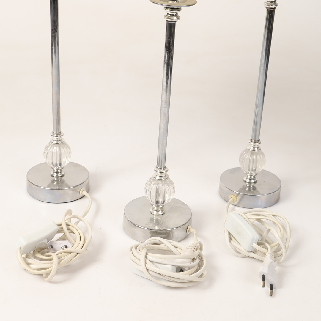 4197273. BORDSLAMPOR, 3 stycken, vitmetall, samtida.