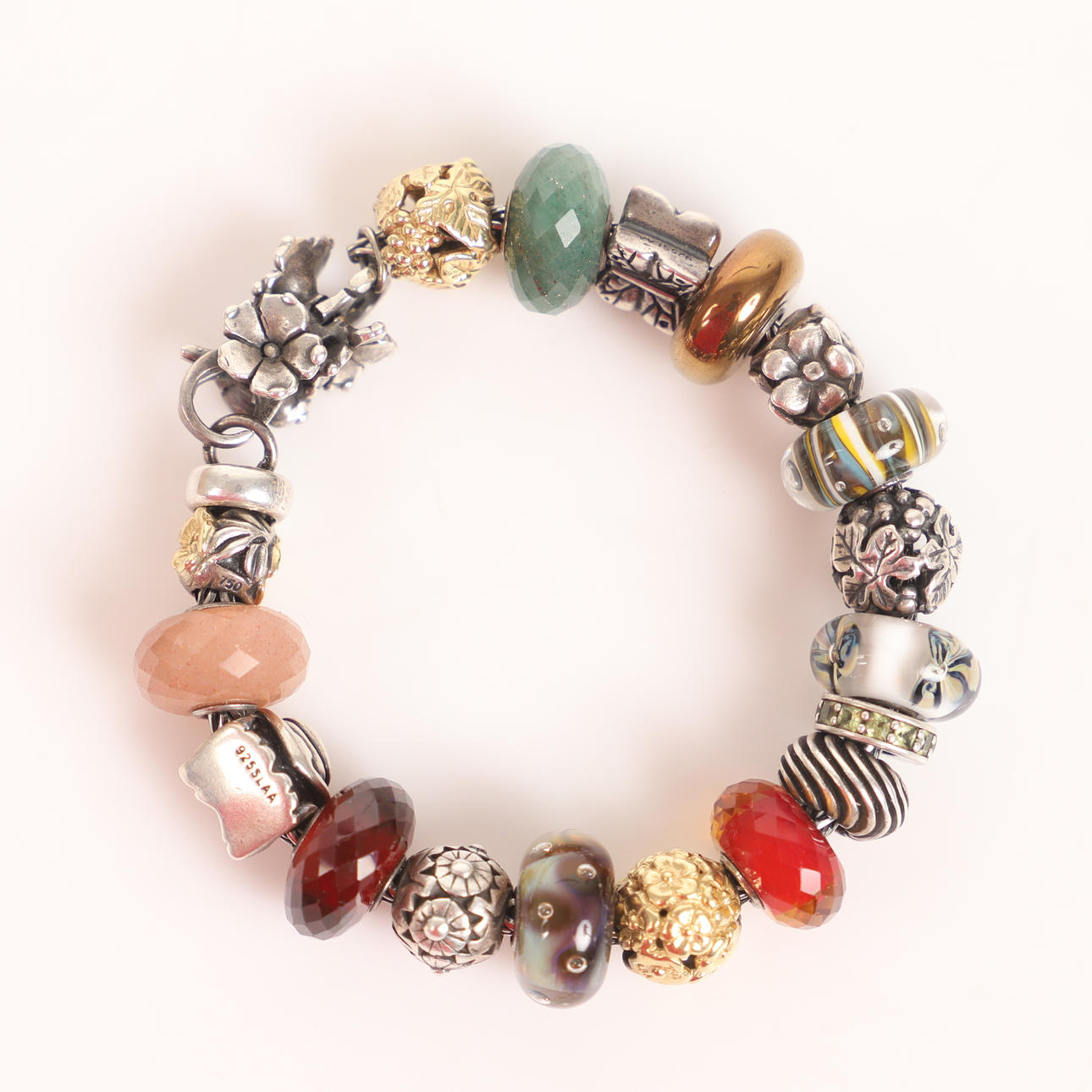 4198854. ARMBAND, sterlingsilver med 18 berlocker, trollbeads, Danmark.
