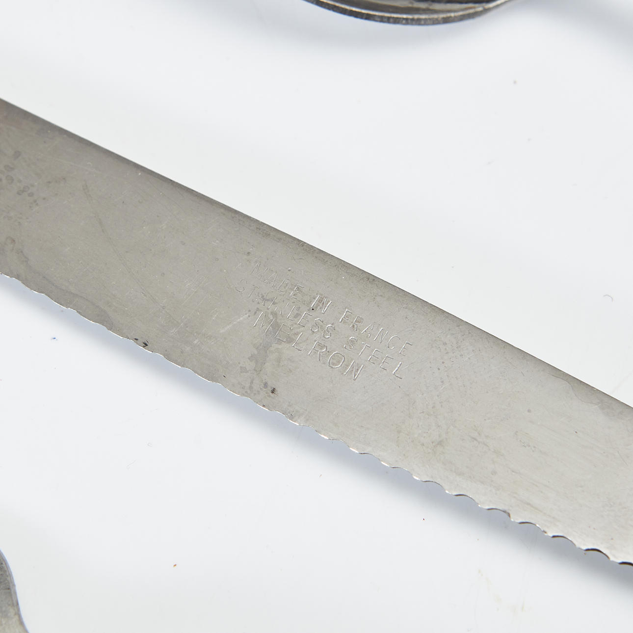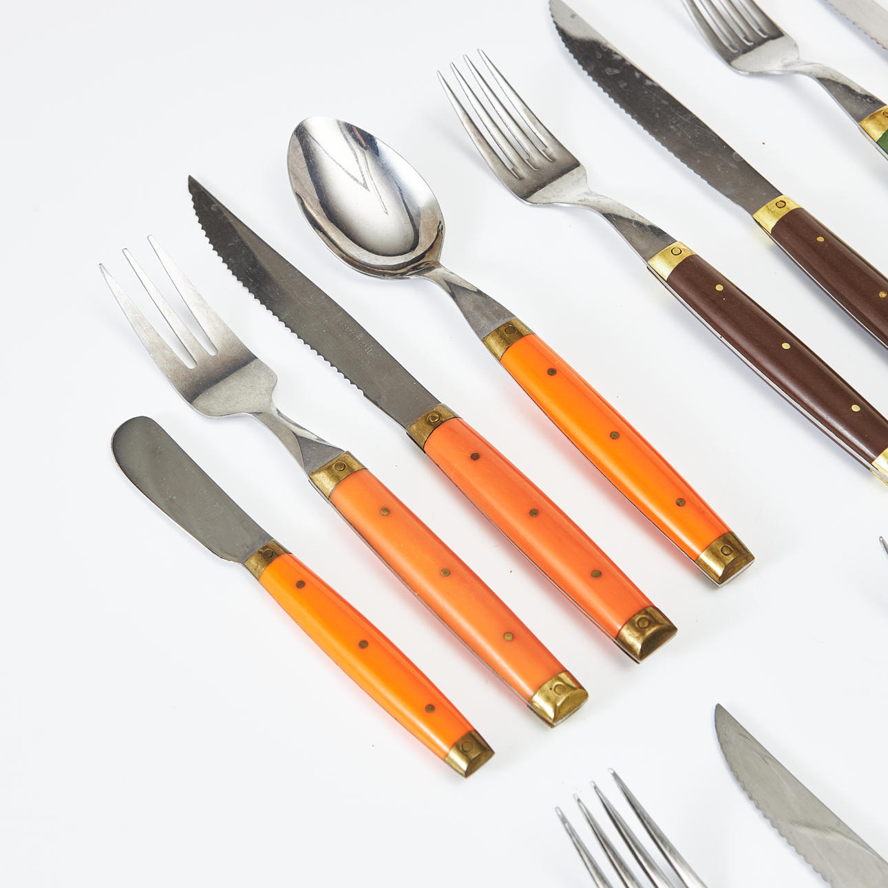 Bestående av: orange 4 gafflar, 5 knivar, 3 skedar, smörkniv