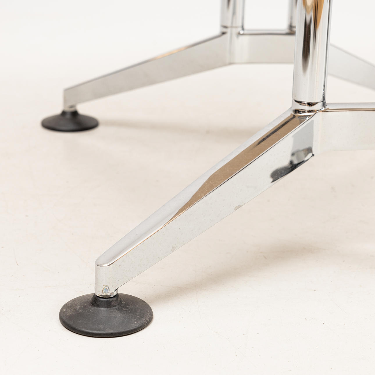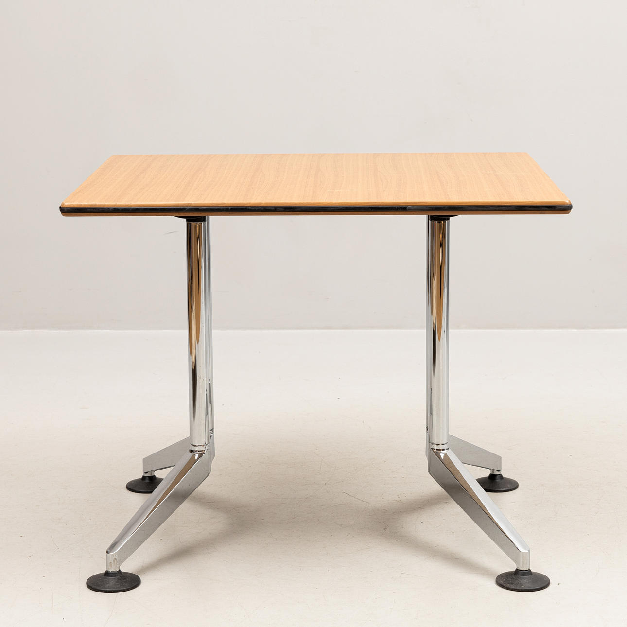 Laminerad skiva med gummikant, benställning i metall. Ca 90 x 75, höjd 73 cm.