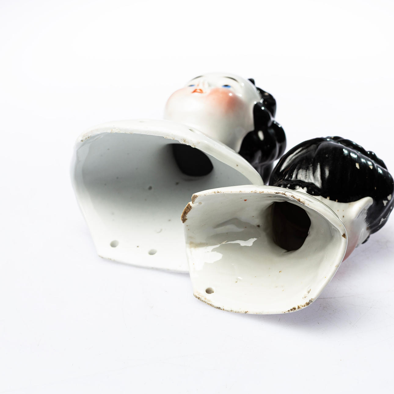 Bruksslitage, färgskav, en med mindre avslag vid hålet baktill.