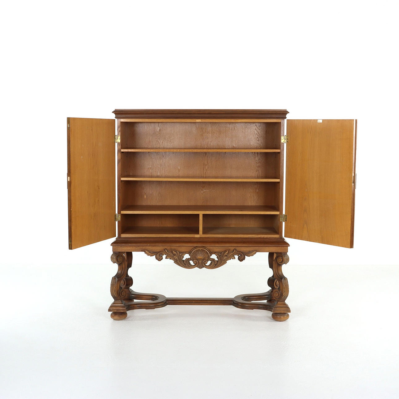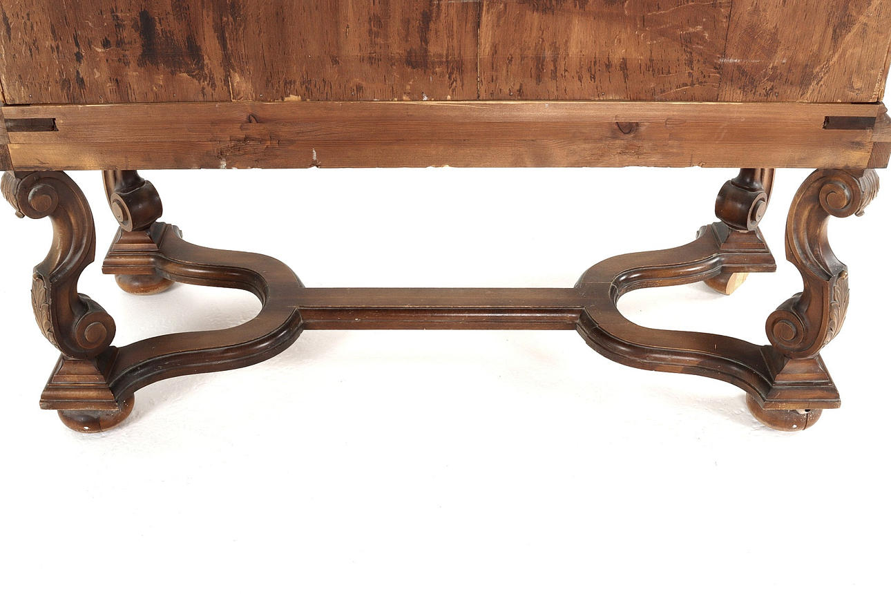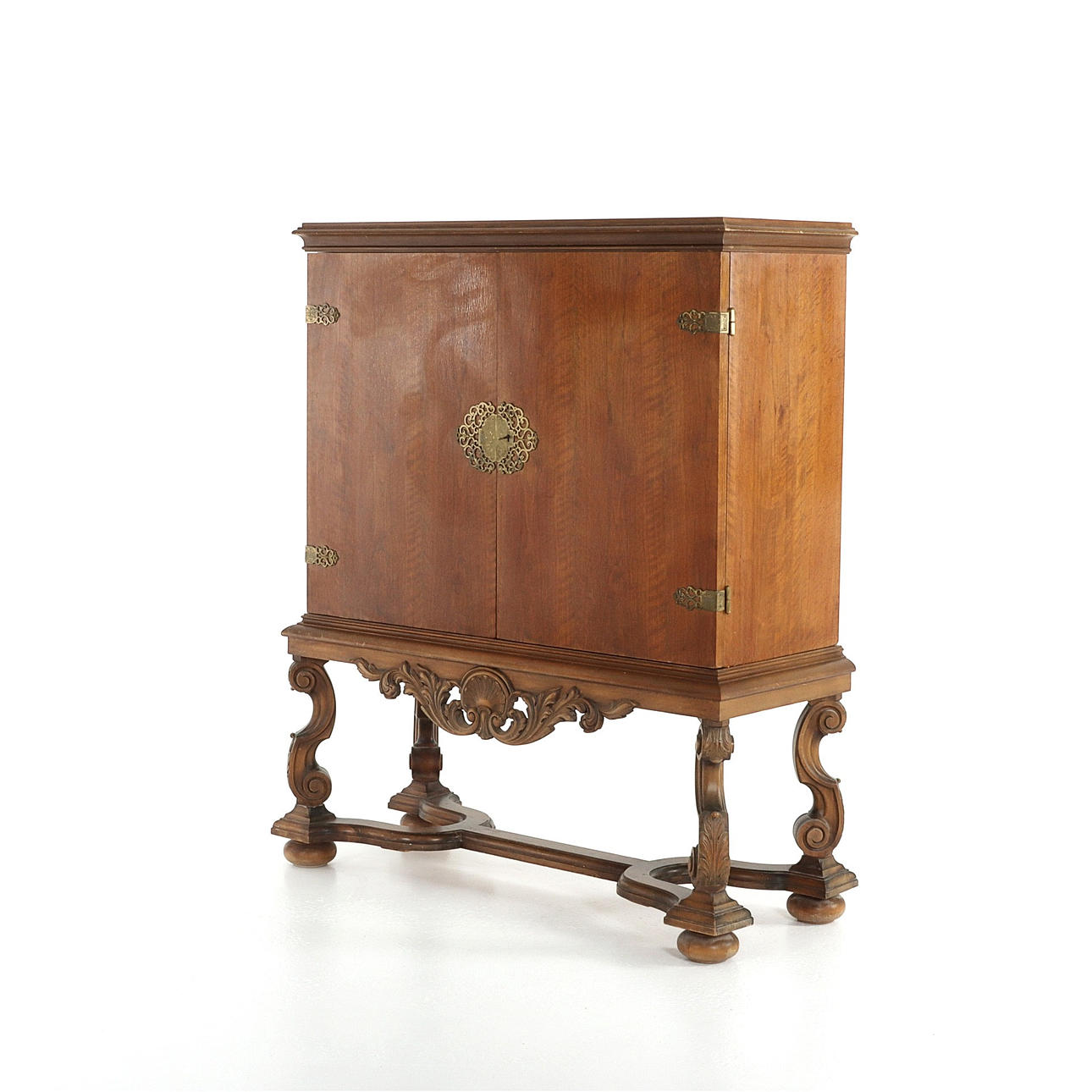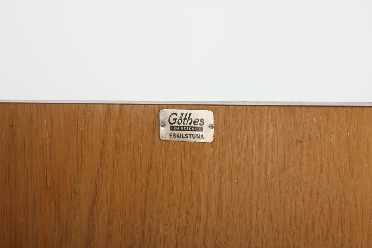 Skåp på benställning, beslag i mässing med ciseleringar. Märkt Göthes Eskilstuna. Sverige 1930-tal.