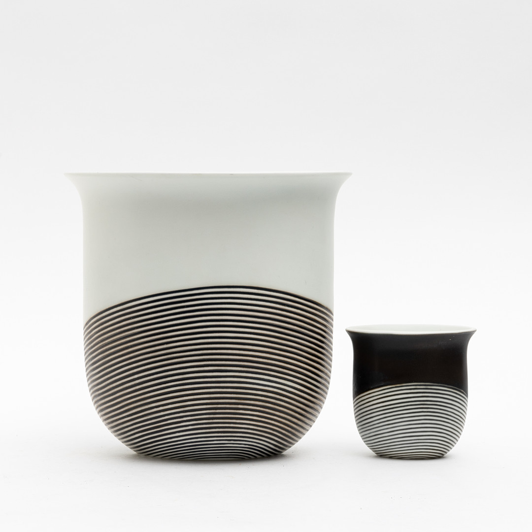 4204403. INGER PERSSON. Vaser, 2 st stengods, "IPE", Rörstrand.