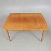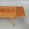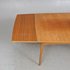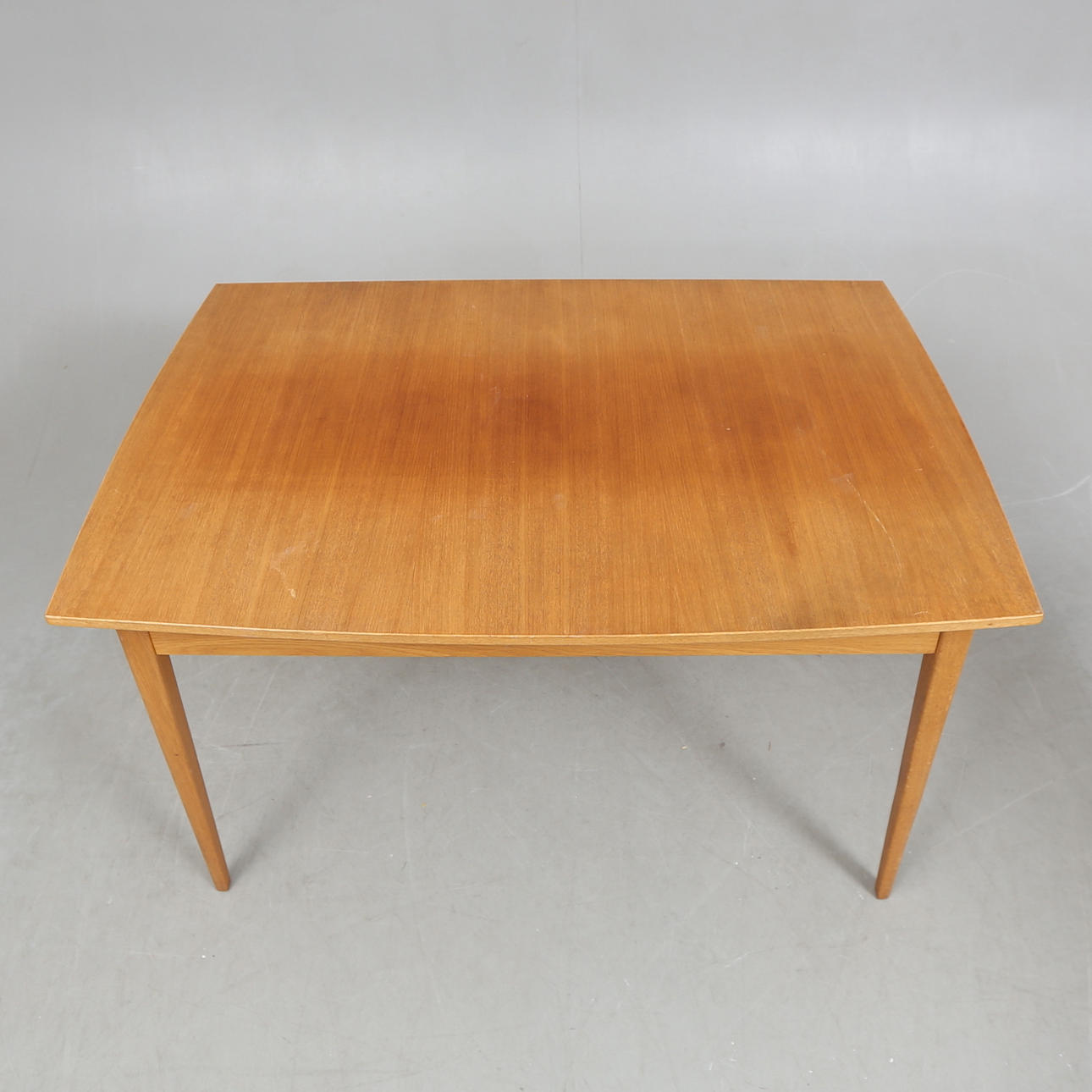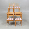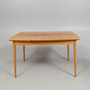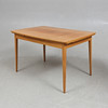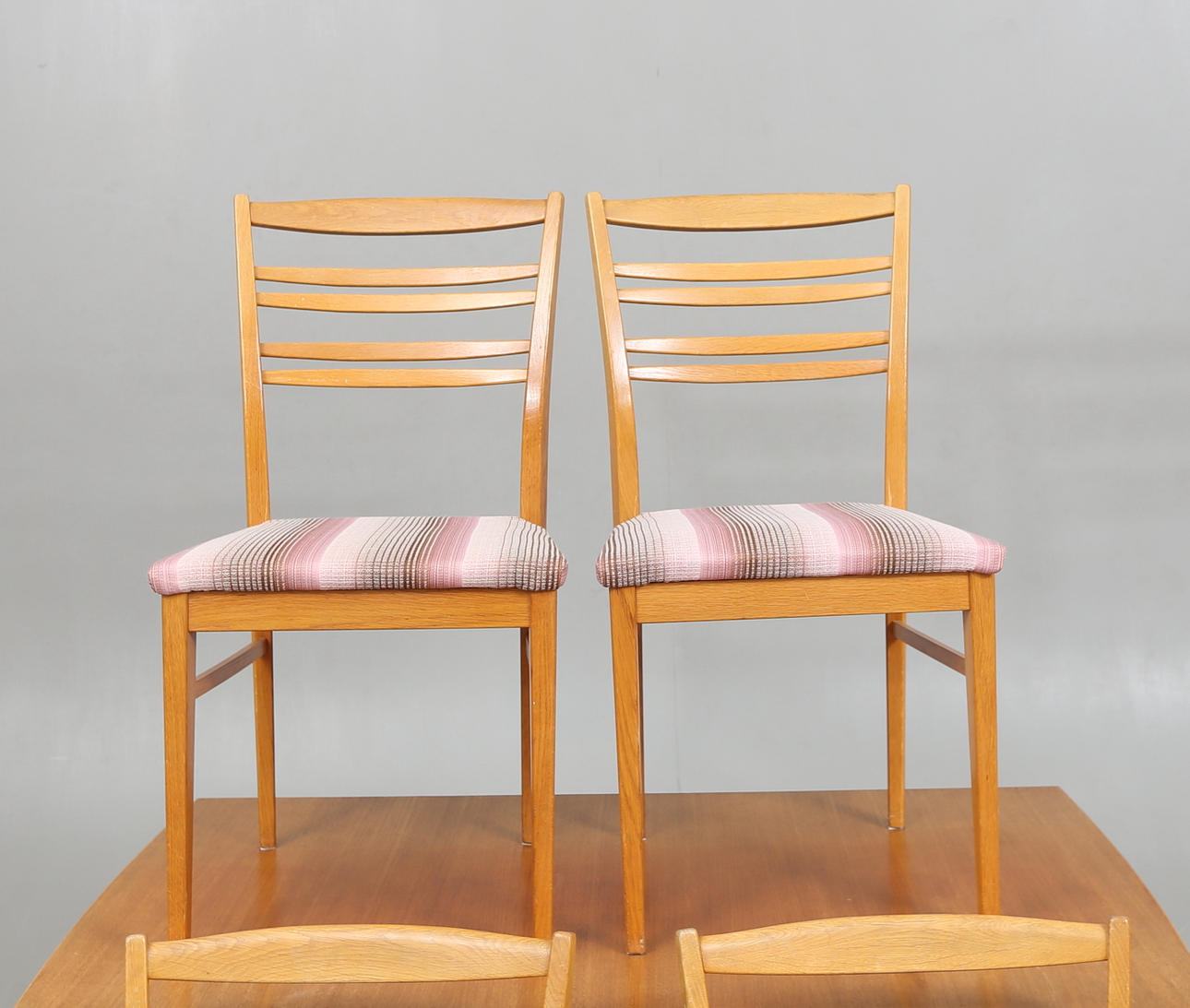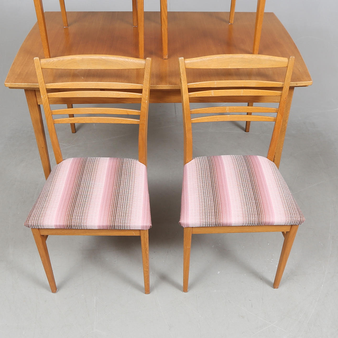 Bord med utdragbara skivor. Höjd ca 74 cm. Längd ca 125 cm. Bredd a 80 cm. 4 stolar. Sitthöjd ca 44 cm.