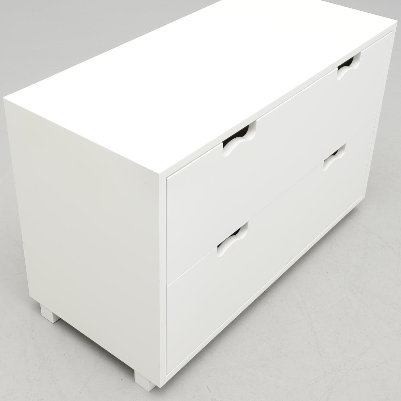 Front med två lådor. Bredd 90 cm. Djup 42 cm. Höjd 59 cm.