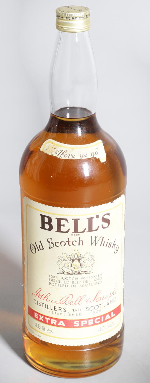 En stor oöppnad 4,5 liters flaska Bell's Whisky, 40% volym. Flaska 49,5 cm hög *Observera att Auctionet inte kan skicka detta utanför Storbritannien.