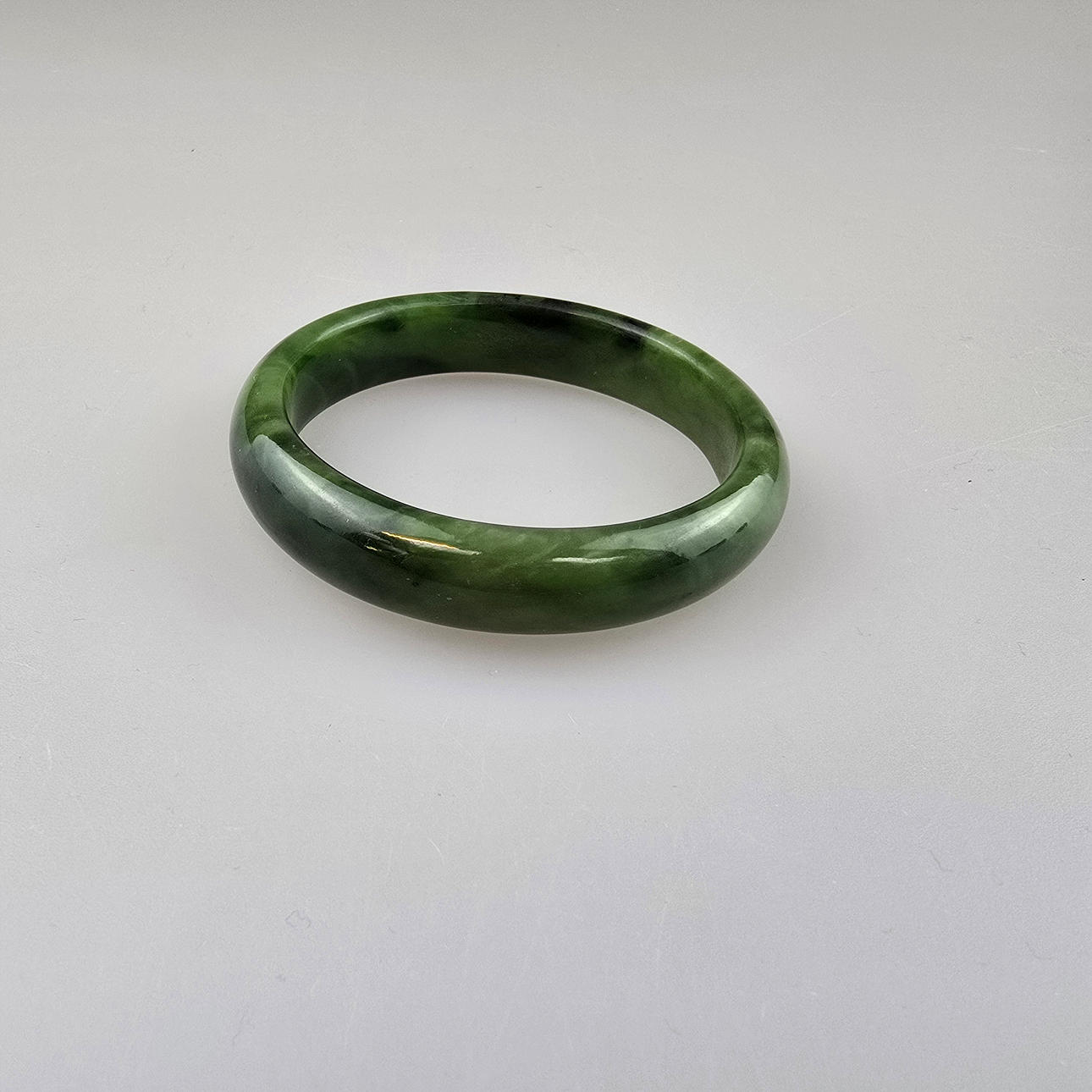rund armring, celadongrön nefrit jade med spenatgröna inneslutningar, inre DM.ca. 6,1 cm, vikt ca. 54,7 g.