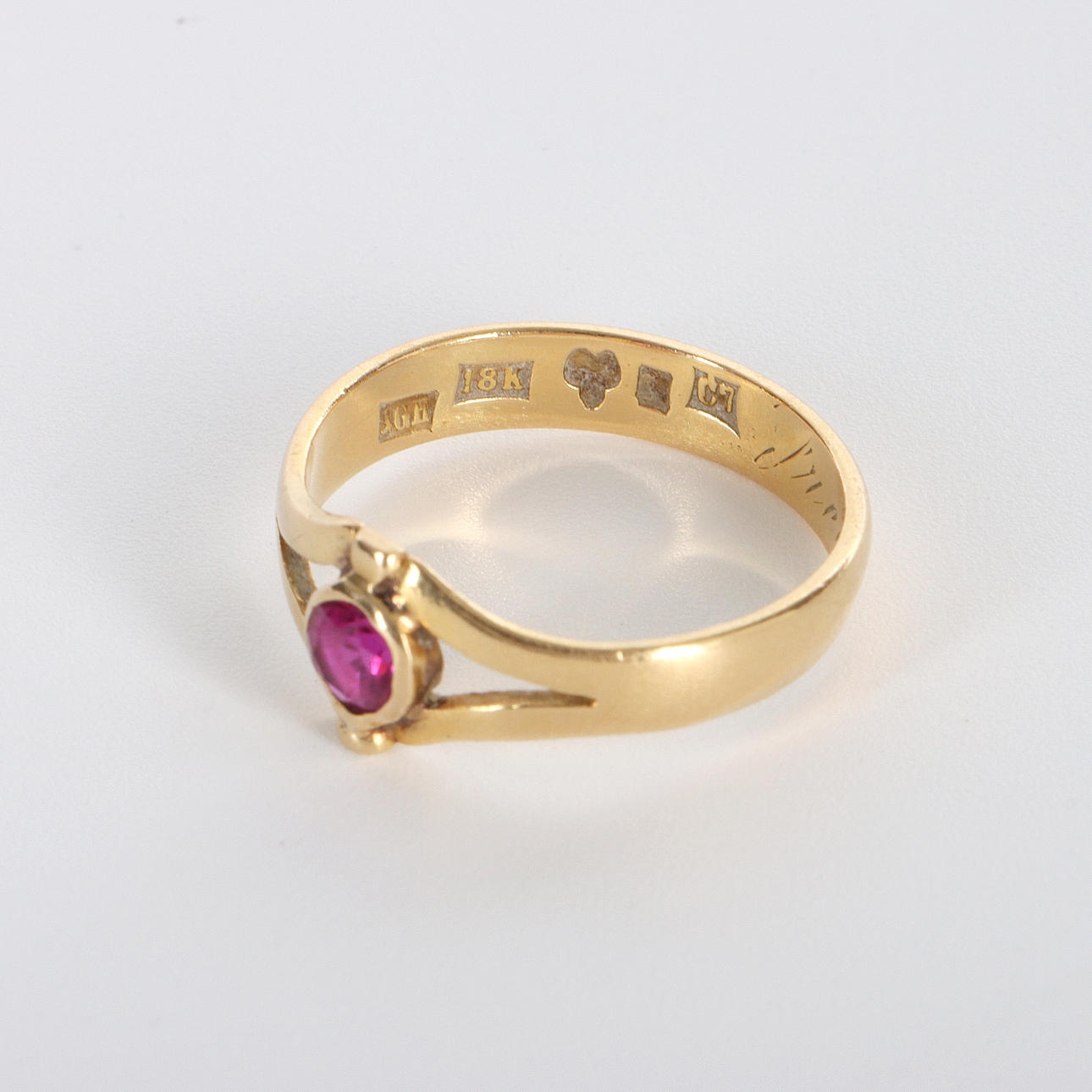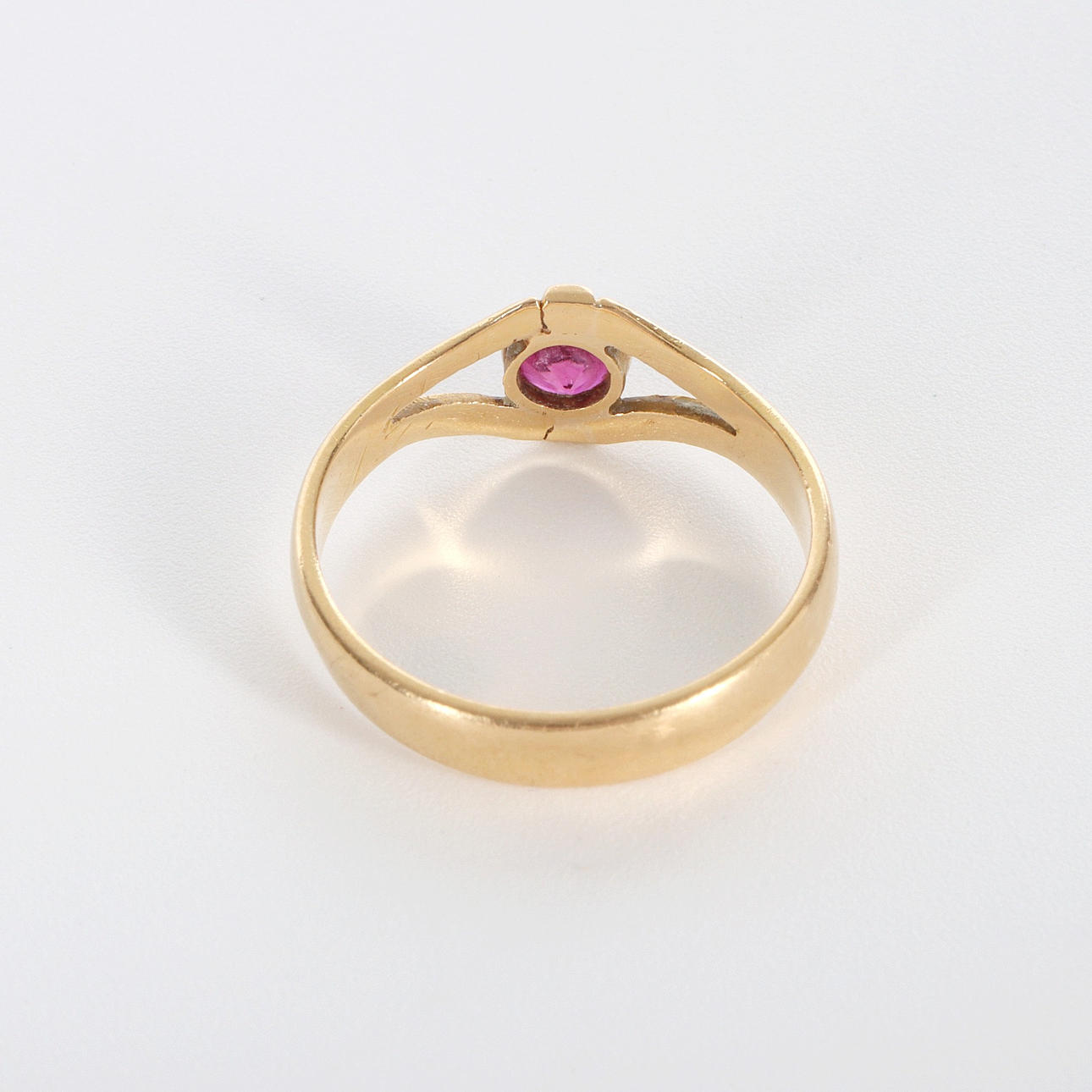 Ring med slipad rosa/cerise sten, 18K guld