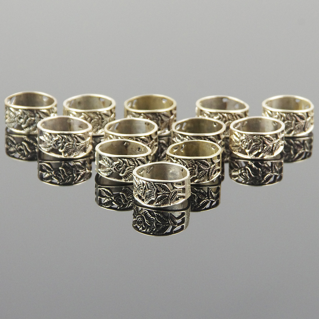 421586. SERVETTRINGAR, 12 stycken, silver, GEWE.