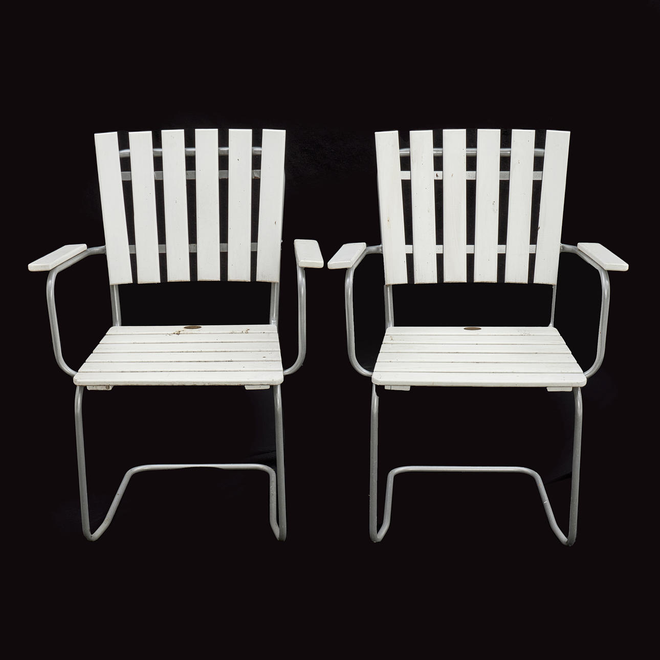 Stomme i lackerat stålrör. Rygg och sits i målat trä.