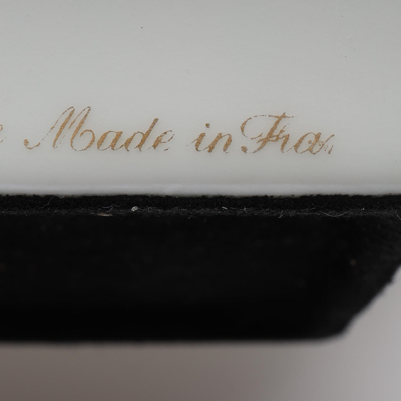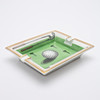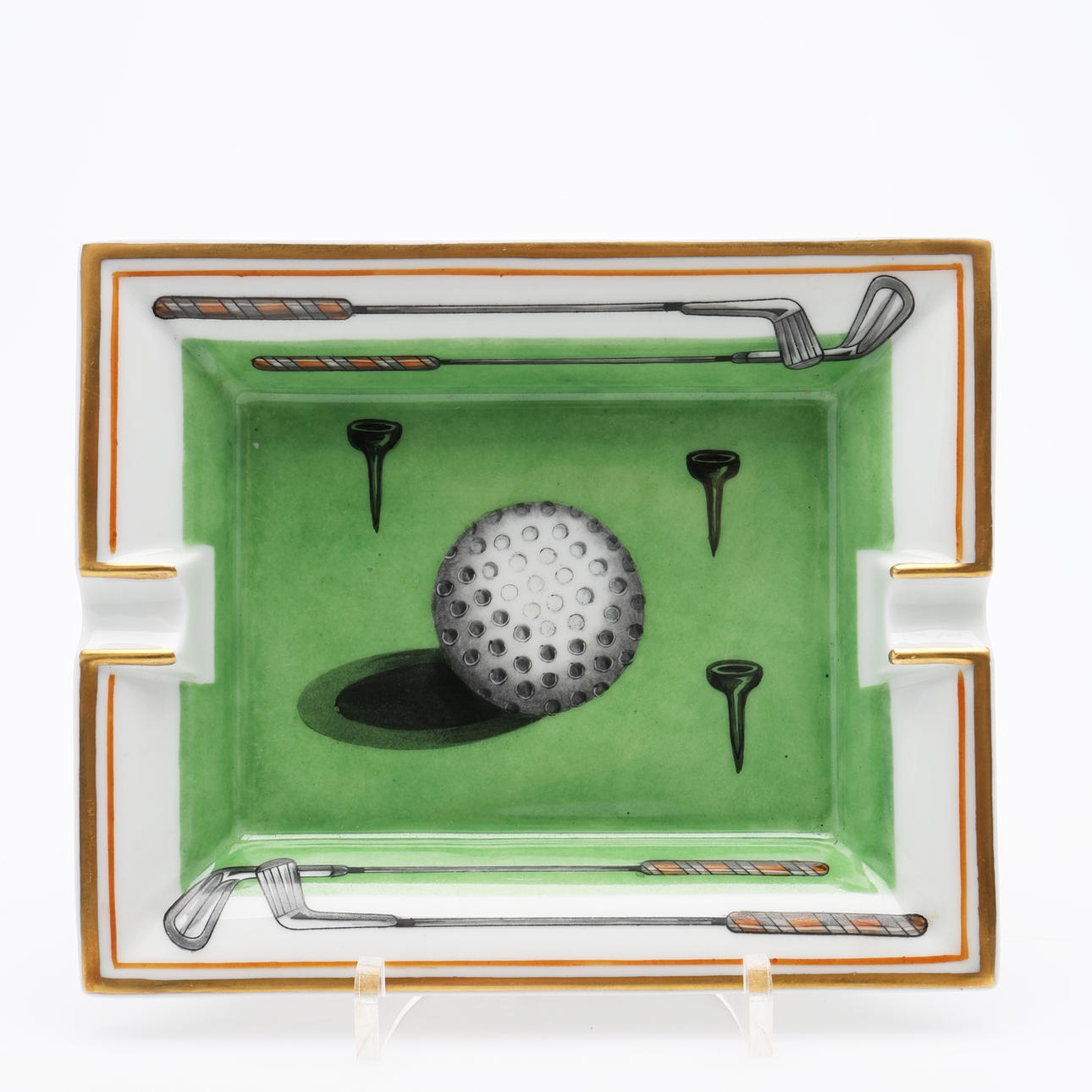 Dekor i form av förgyllda kanter och motiv av golfboll, klubbor och peggar.