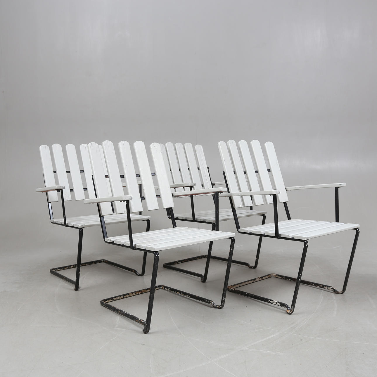 2 med etiketter under färgen. Torrsprickor. Färgskav/bortfall, fläckar.