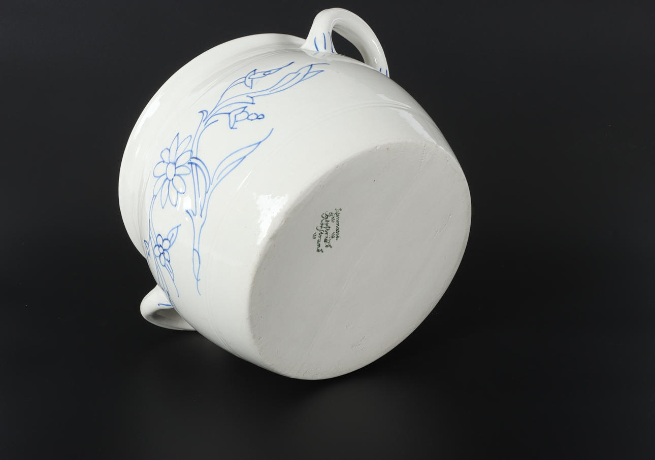 2 st krus med hänklar, porslin, Rörstrand, 1900-talets andra hälft Höjd ca 18 resp. 16 cm Diameter ca 23 resp. 20 cm.