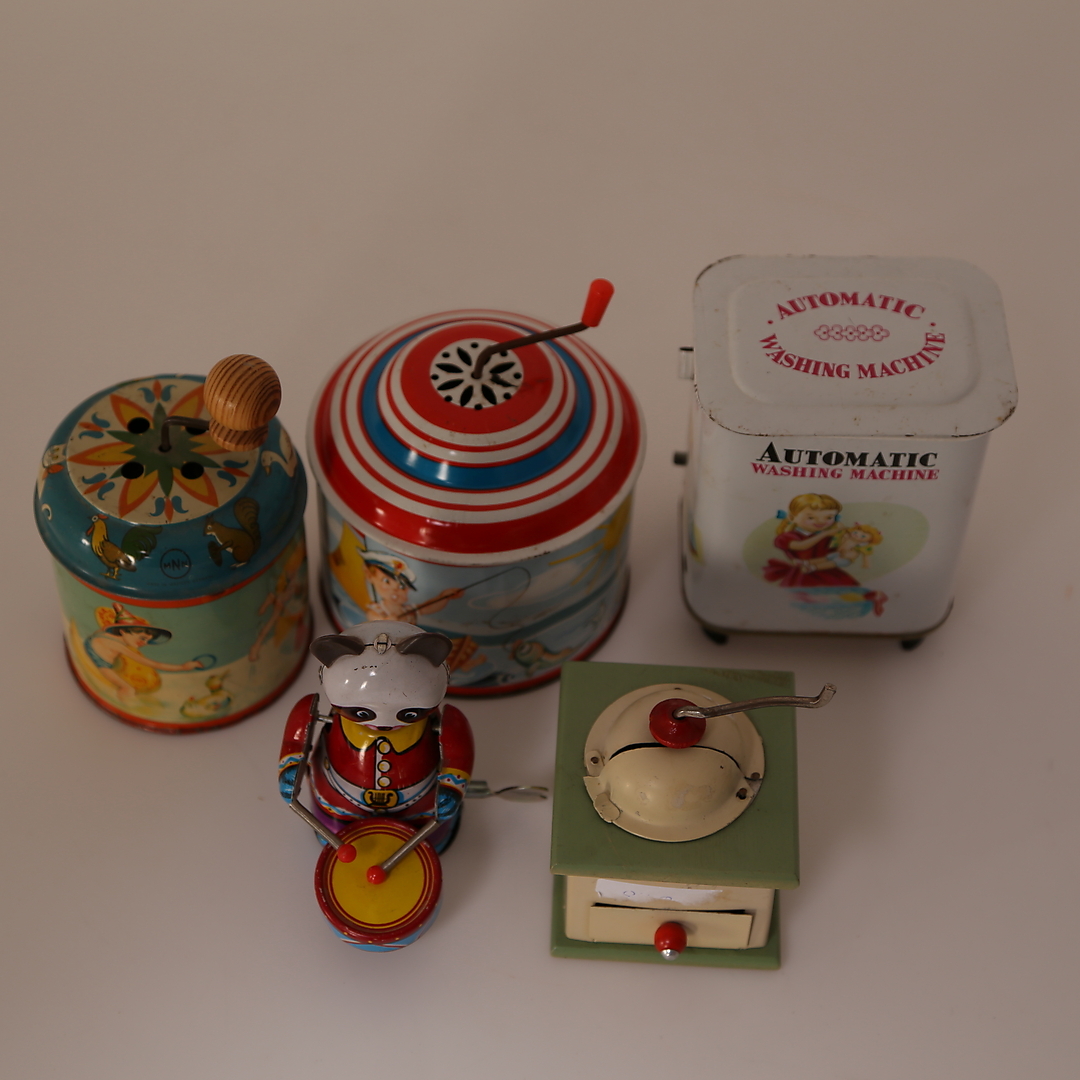 421983. LEKSAKER, 5 st, plåt/trä, 1900-tal.
