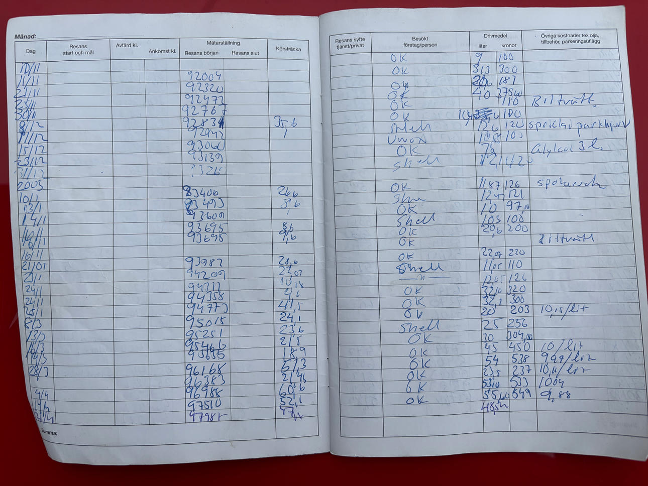 - Körjournal sen 2001